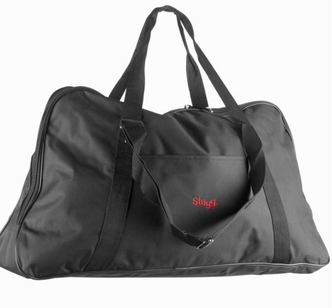 Strong, black nylon with large zip fastener and extra resistant ribbon stitchings for secure transportation