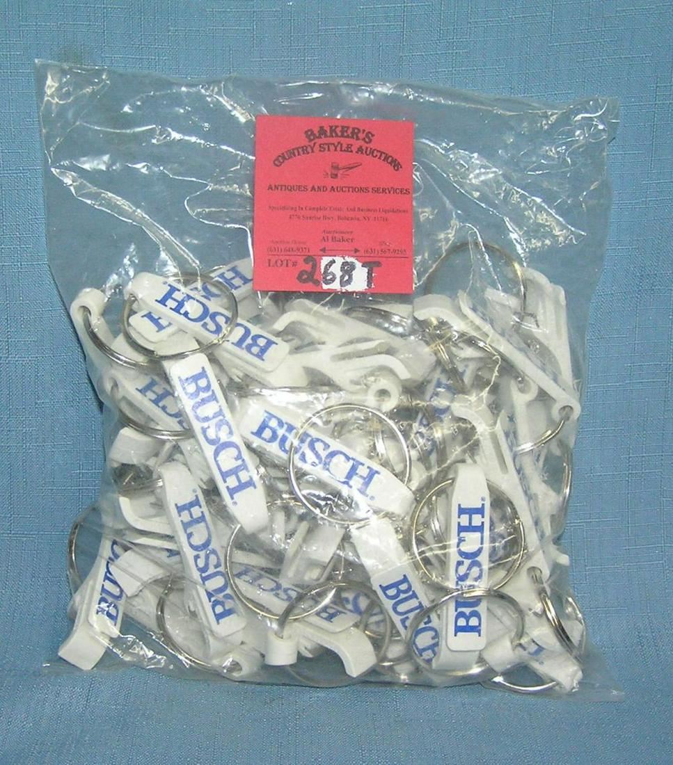 Bag full of Busch Beer advertising key chains, 100 pieces, new old stock est. value $40.00-$50.00