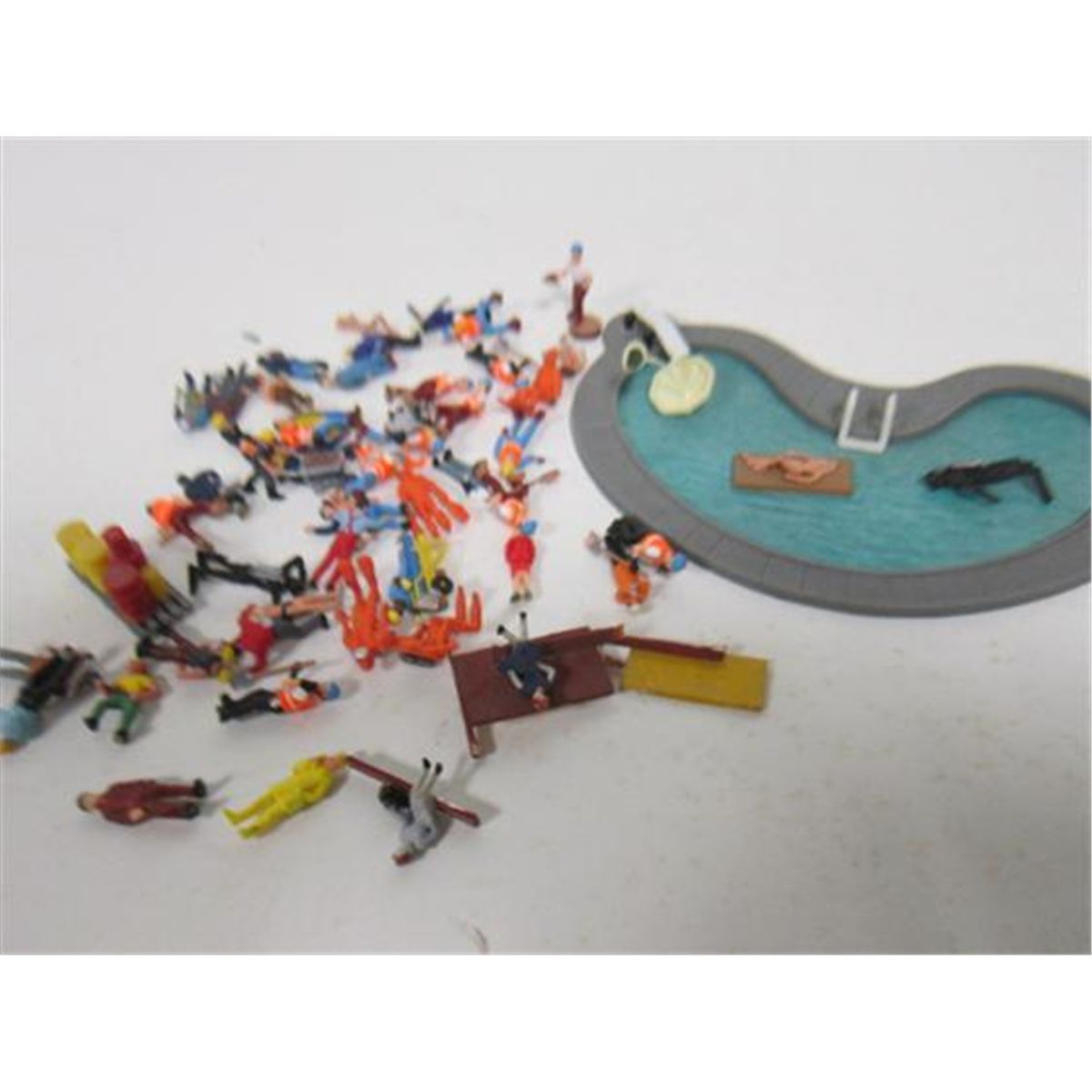 Bag full of assorted tiny mini people - and swimming pool for village train town scene great pieces all kinds