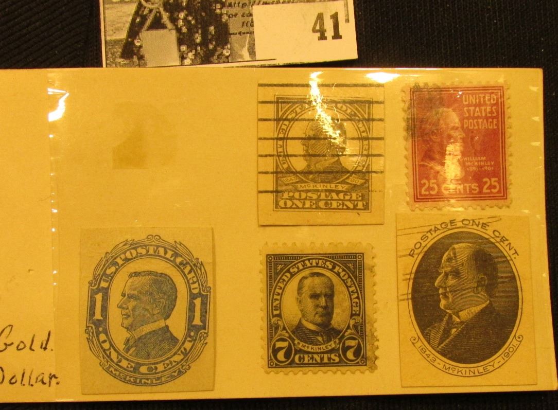 Bag of (5) McKinley Stamps, (3) areMcKinley Post card stamps. One is uncancelled.