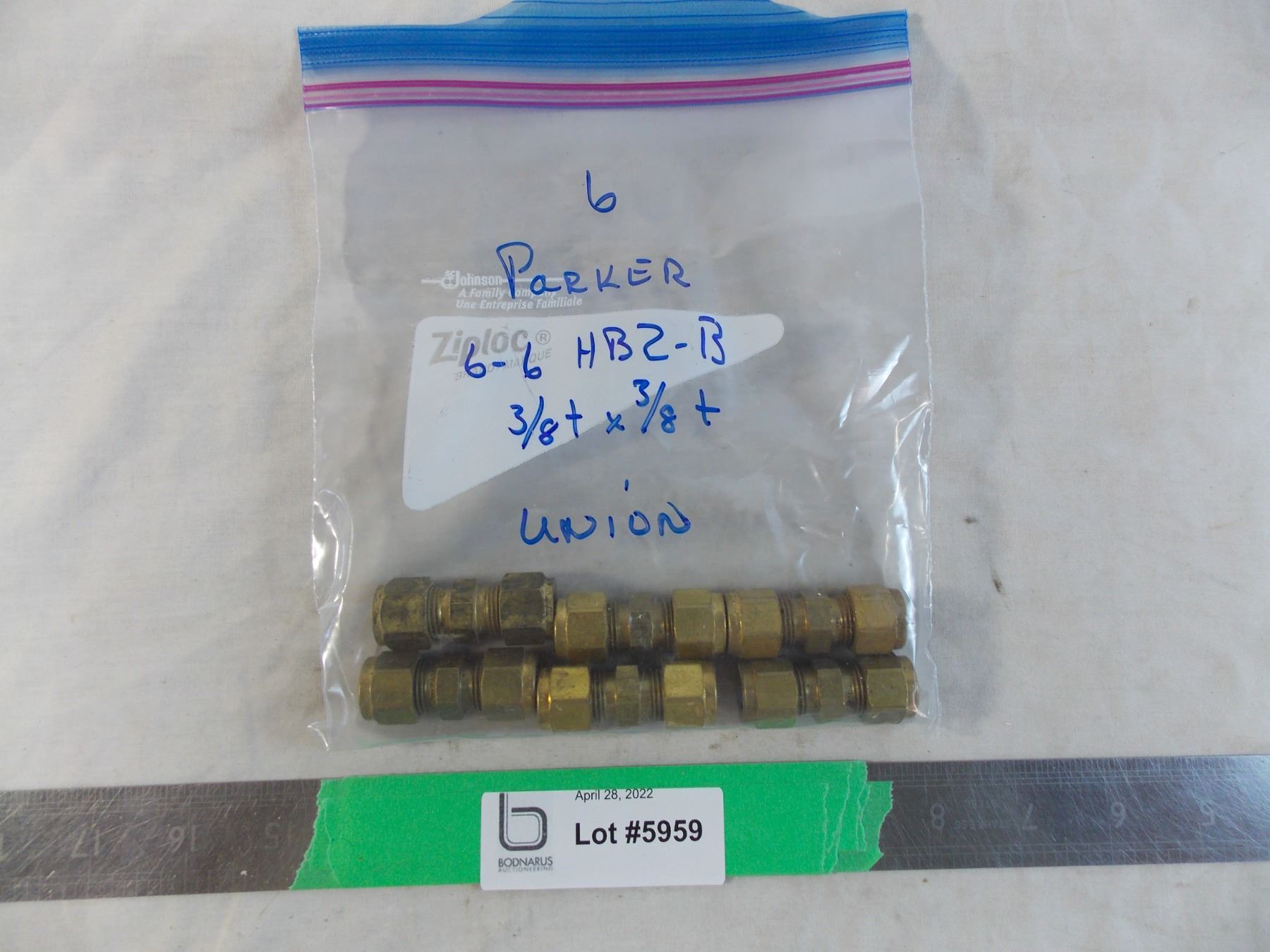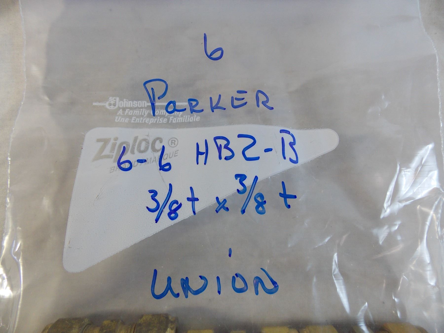 Bag of (5) Parker 6-6-HBZ-B 3/8 t union