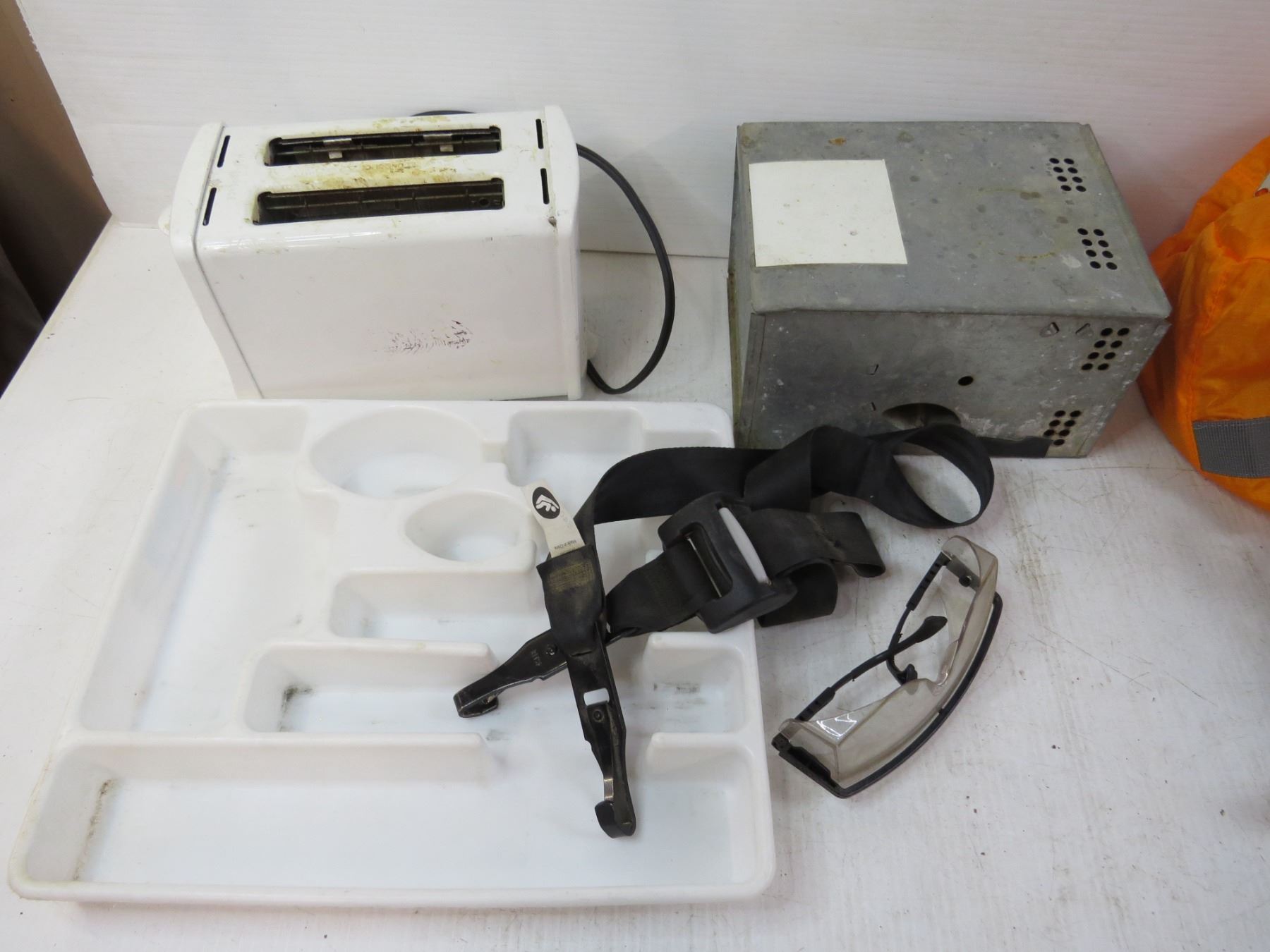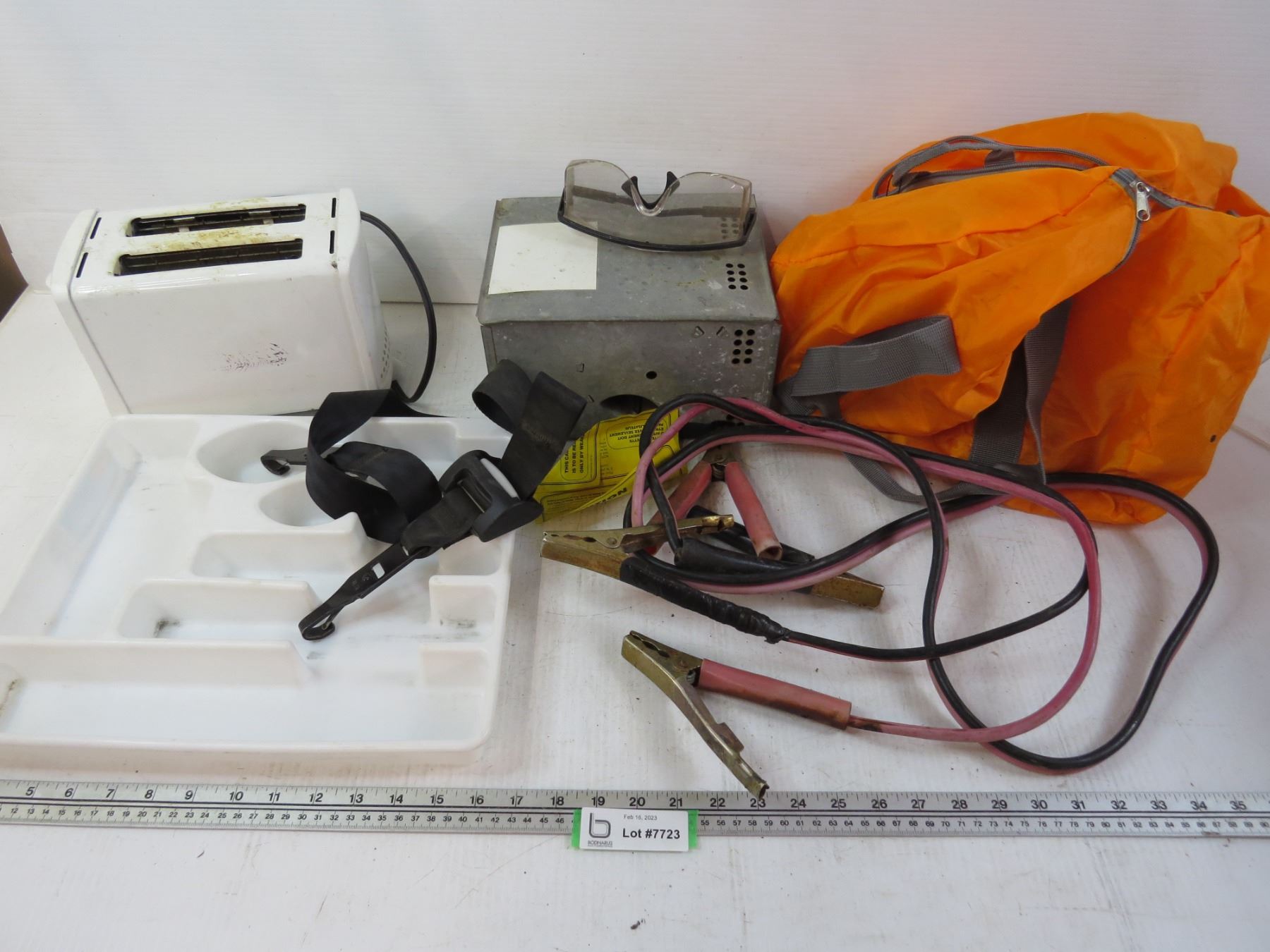 Bag of Bed Legs - Booster Cables - Toaster - Cutlery Tray - Mouse Trap - Safety Googles