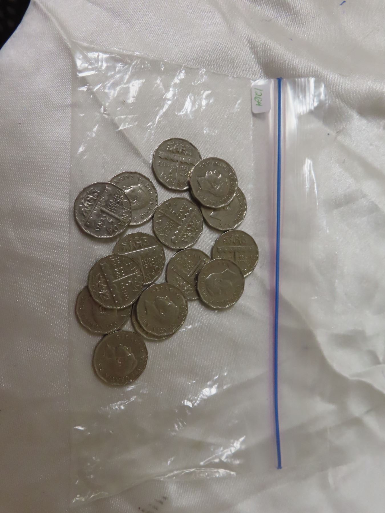 Bag of Canadian 5 Cent Coins; various years