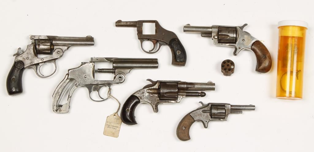 Lot of 6 incomplete antique revolvers for parts.