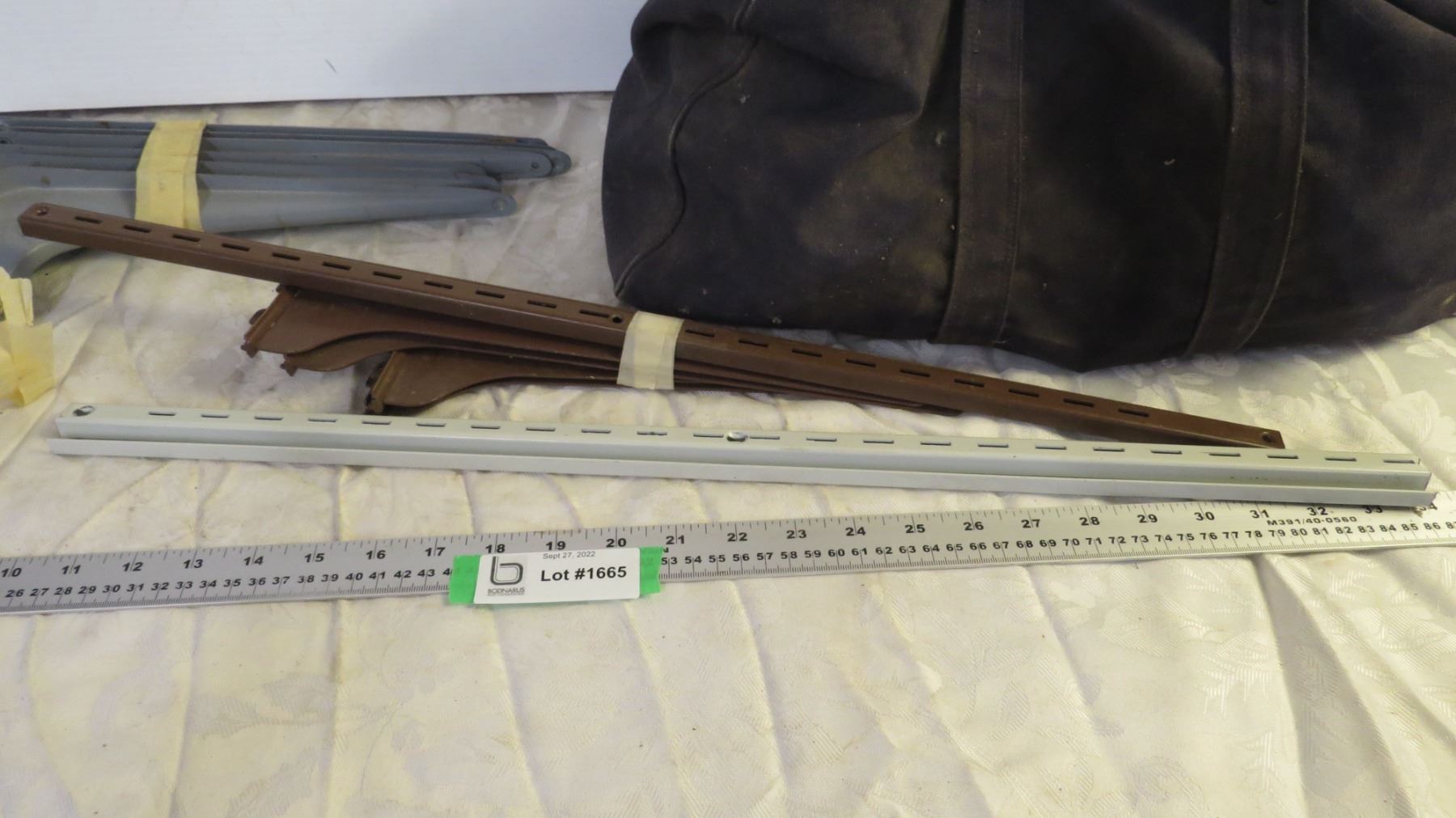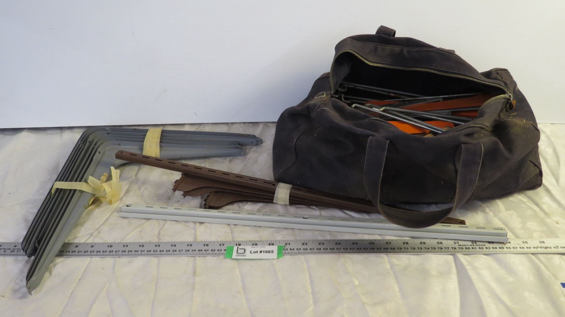 Bag of Shelf Brackets and Pegboard Hooks with Track