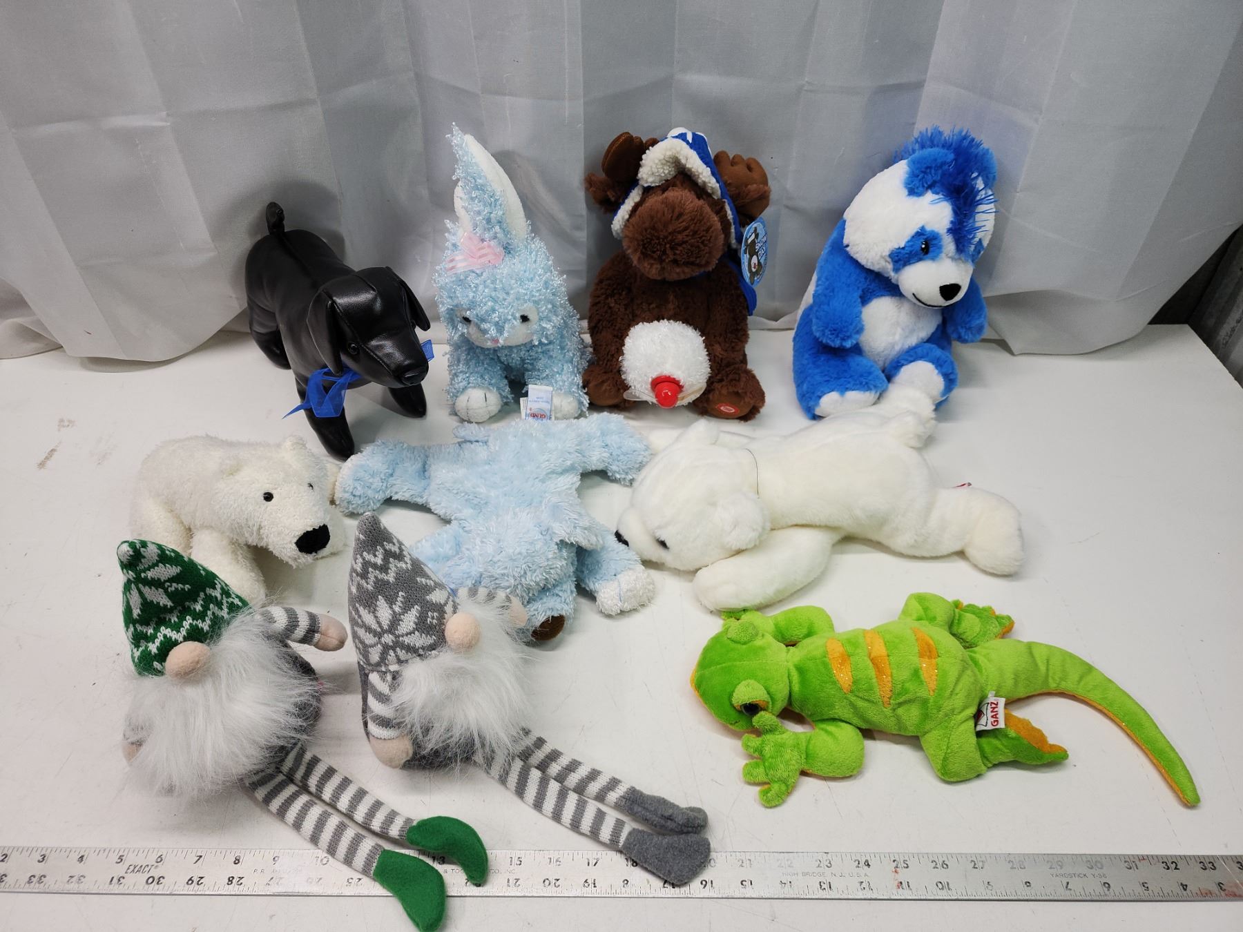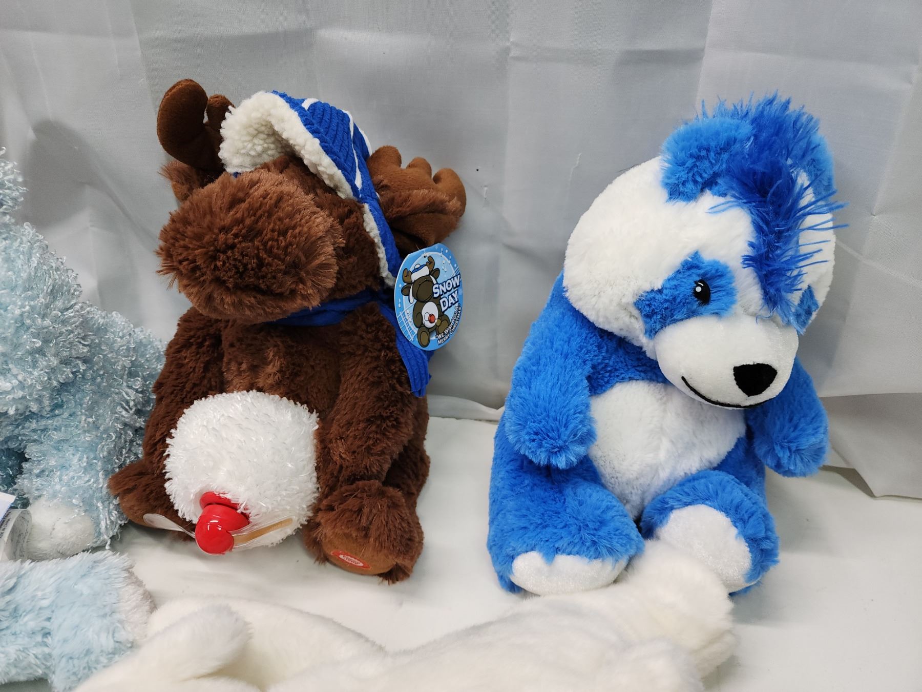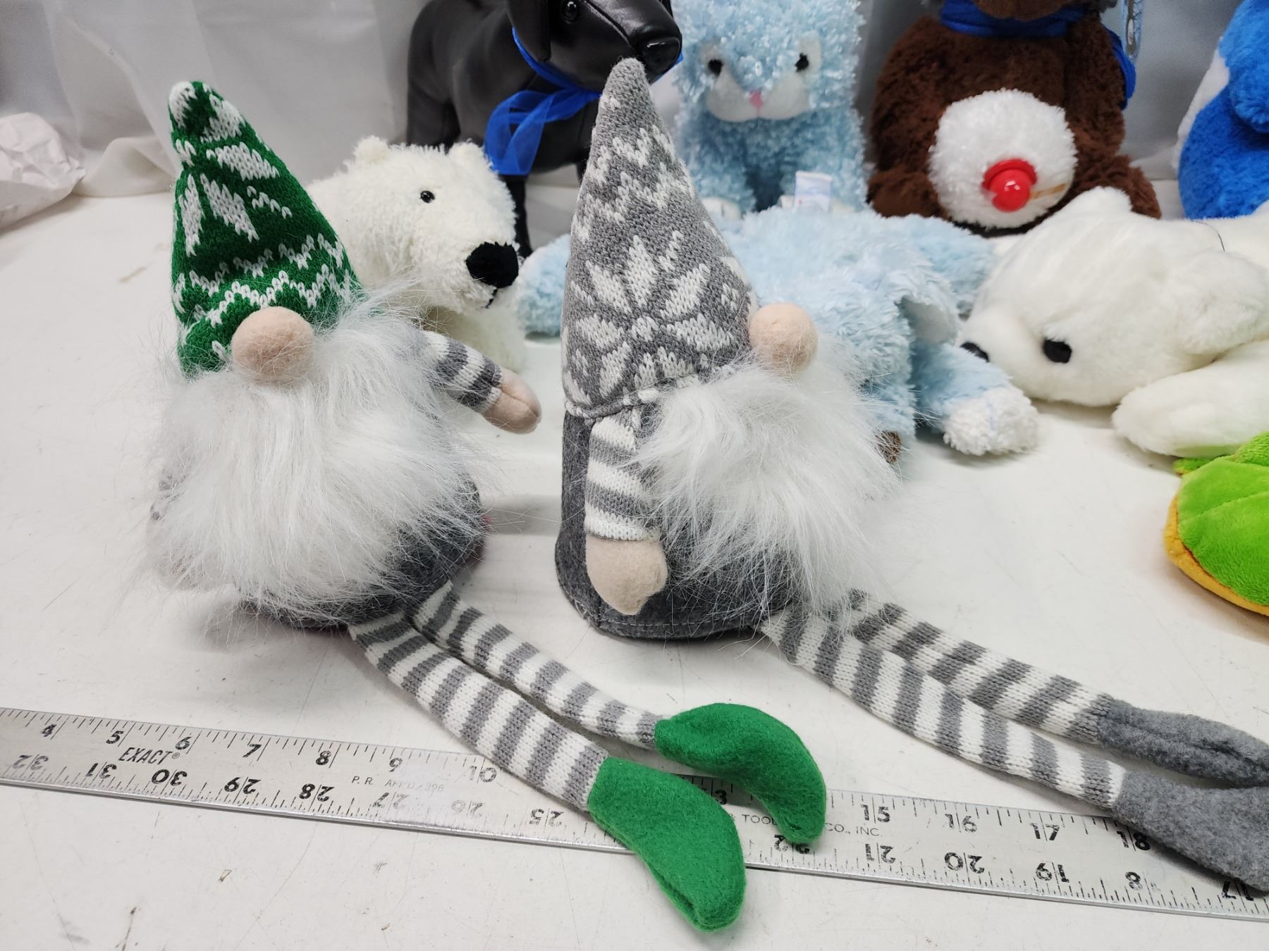 Bag of assorted stuffed animals - Christmas singing moose, gnomes, bears, etc.