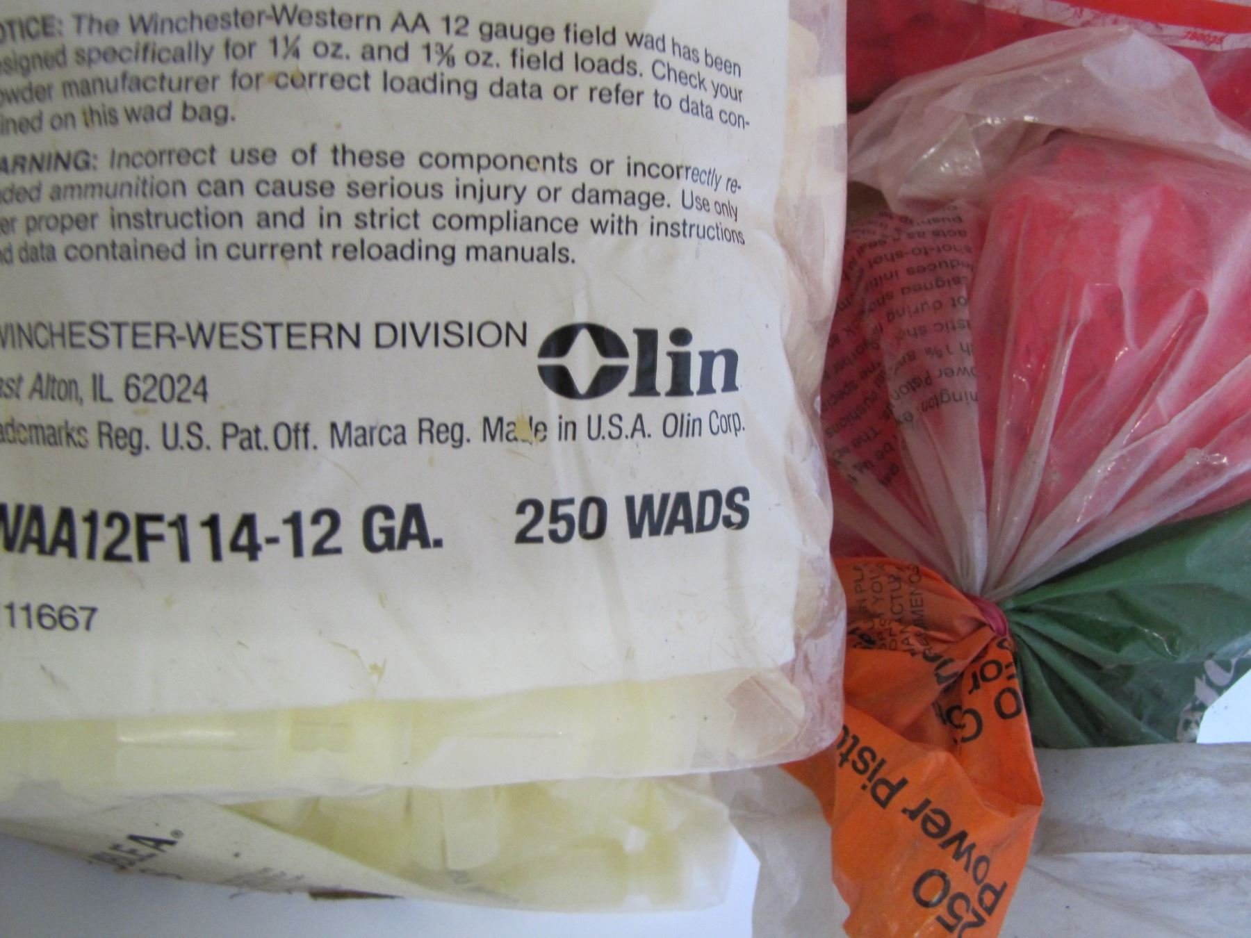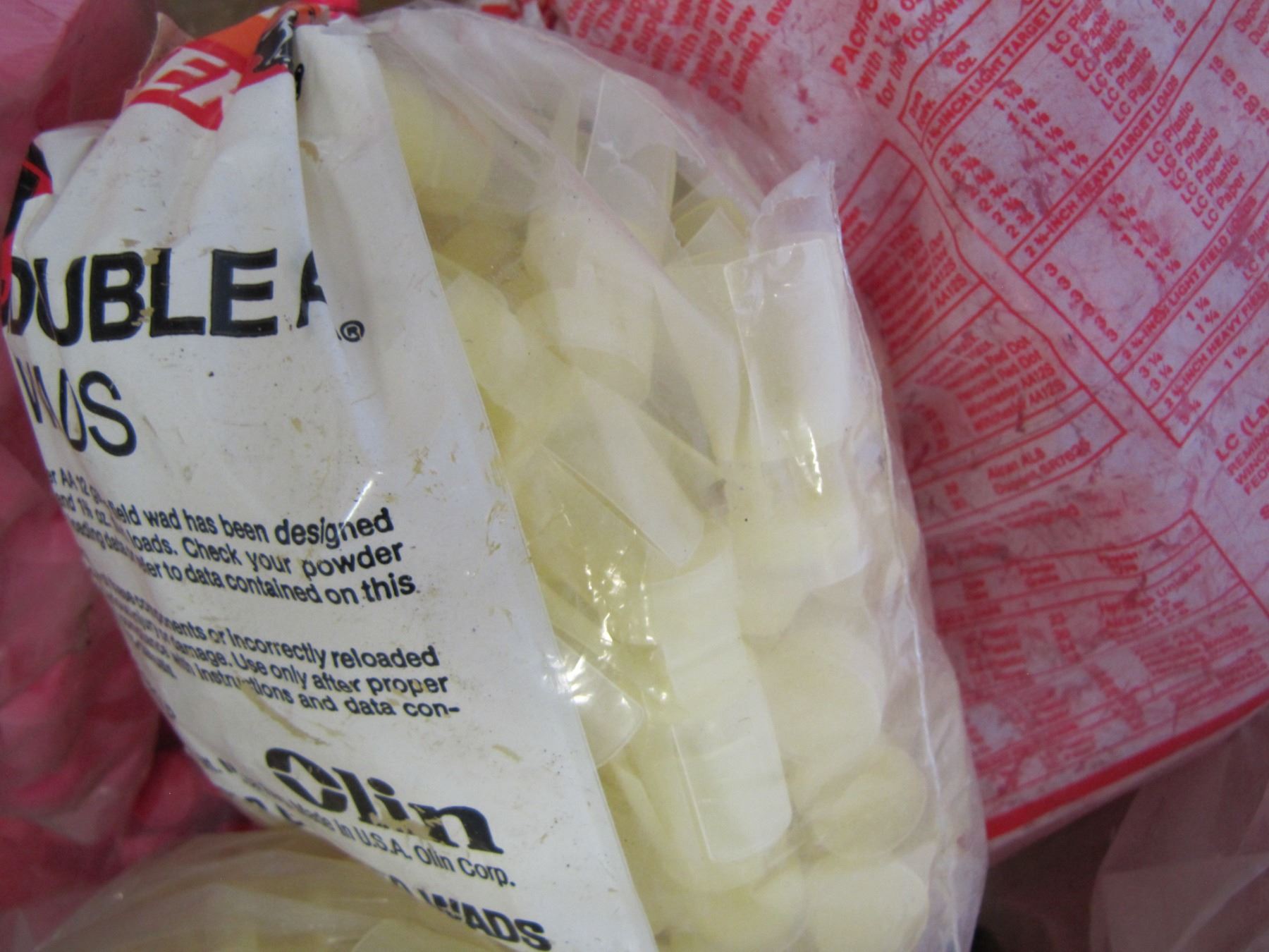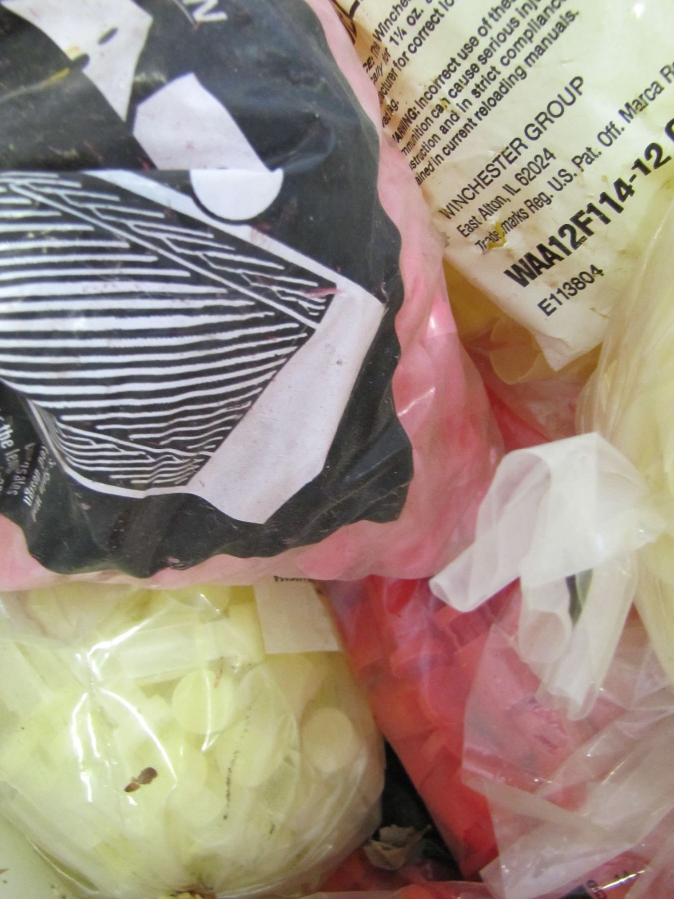 Bag of mostly 12 gauge shot shell wads ; Estimate size to be about half of a 45 gallon drum ; Fair warning shipping can be expensive