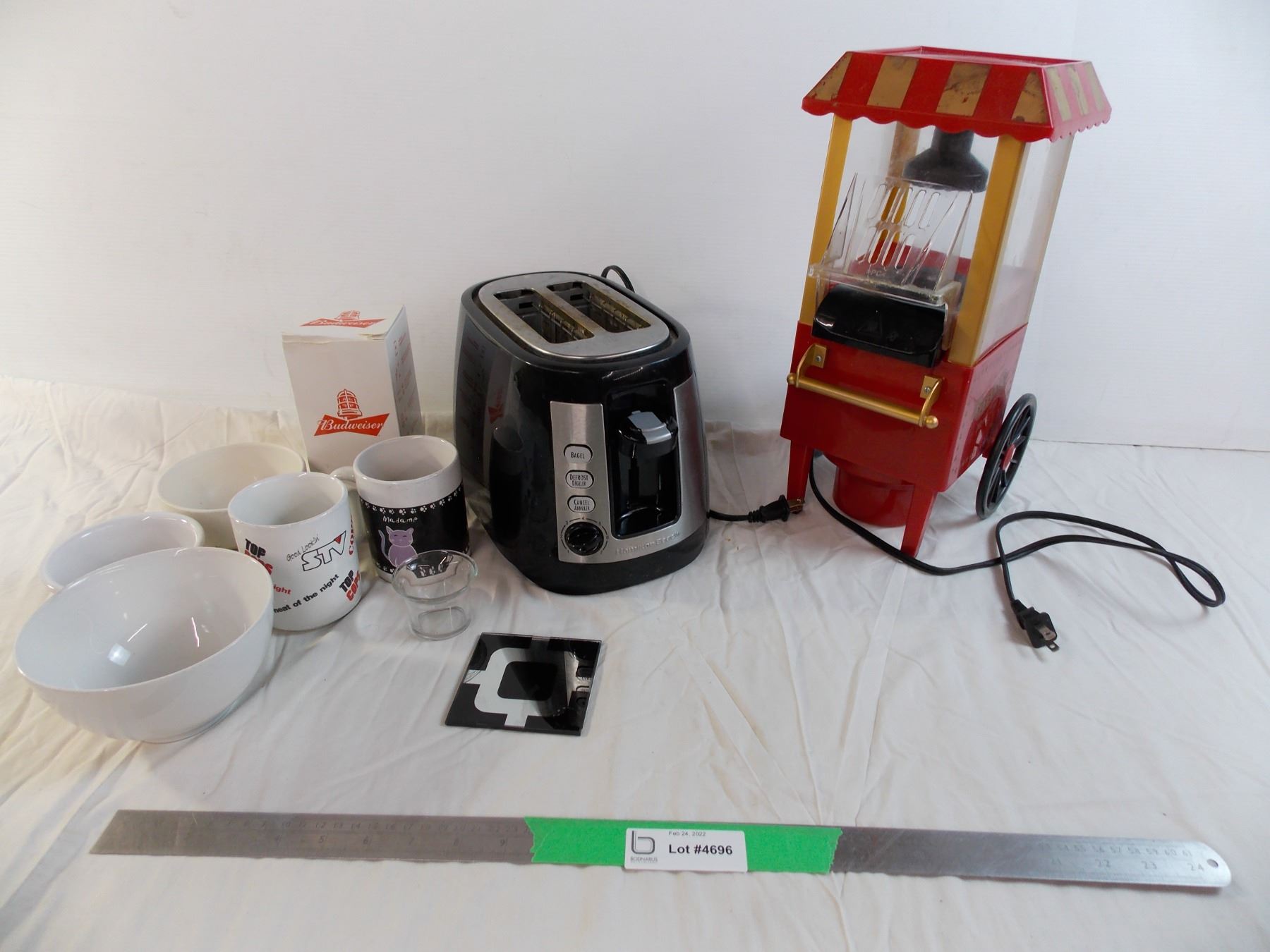 Bagel toaster (working) + various kitchenware items, popcorn maker