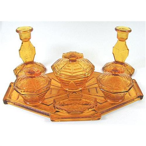 <tr><td>Title:Bagley Glass COBWEB Art Deco Vanity Set</td></tr>