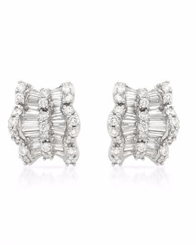 Baguette and Round-cut Diamond Button Earrings in 18K White Gold | 220517 Grams, featuring 0.96 BAGUETTE ct 46 1.01 ct 44 ct 18 ct
