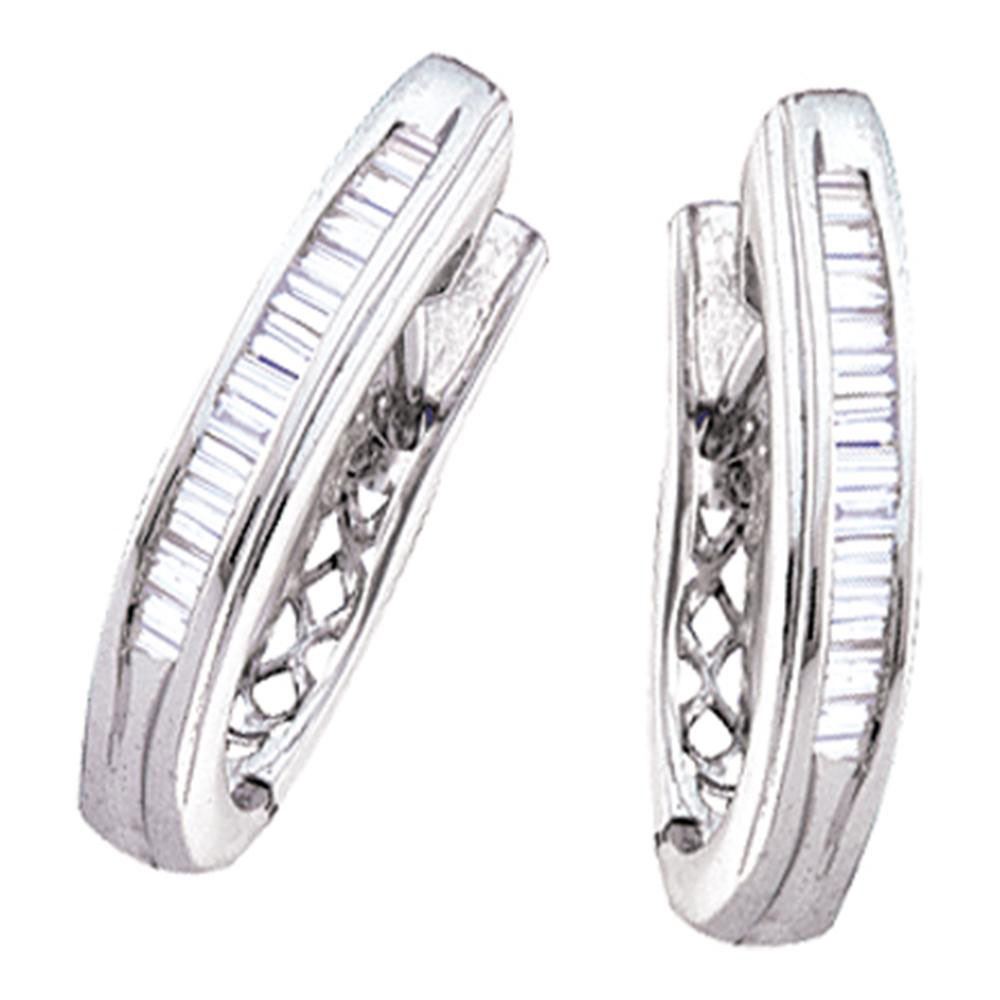 REF-33W6H - SKU: GD5212 ---- Baguette Channel-set Diamond Hoop Earrings 1/2 Cttw 10kt White Gold