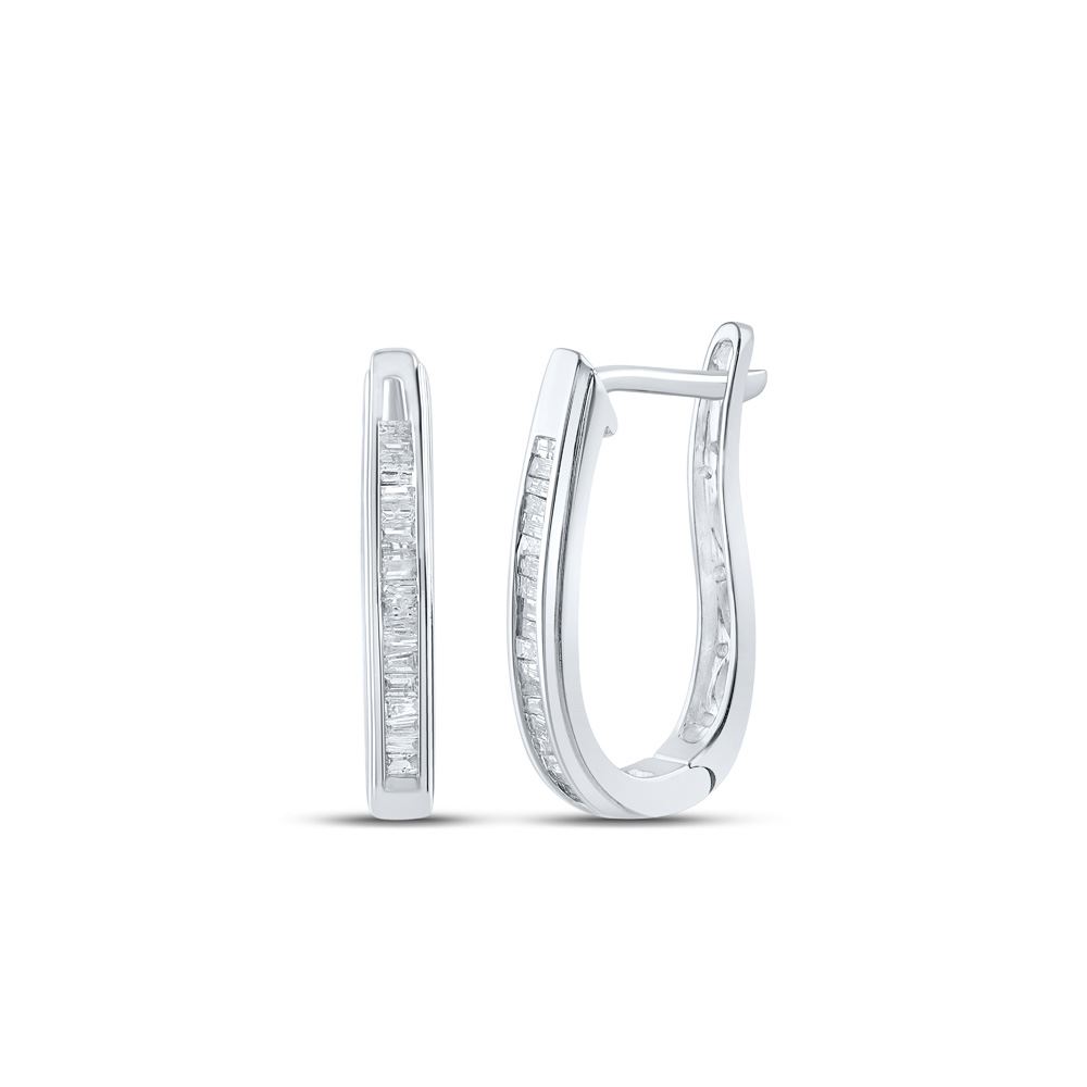 10kt White Gold Womens Baguette Channel-set Diamond Hoop Earrings 1/4 Cttw.
