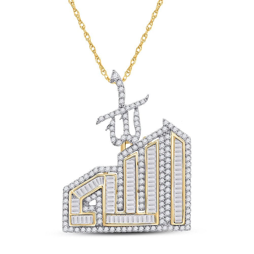 10kt Yellow Gold Mens Baguette Diamond Allah Islam Charm Pendant 1-1/4 Cttw.