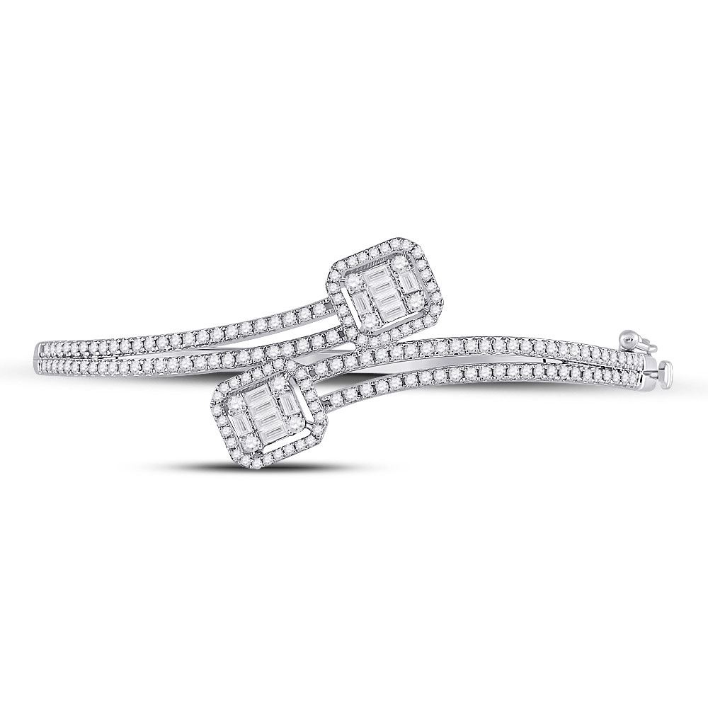 14kt White Gold Womens Baguette Diamond Bangle Bracelet 1-1/3 Cttw