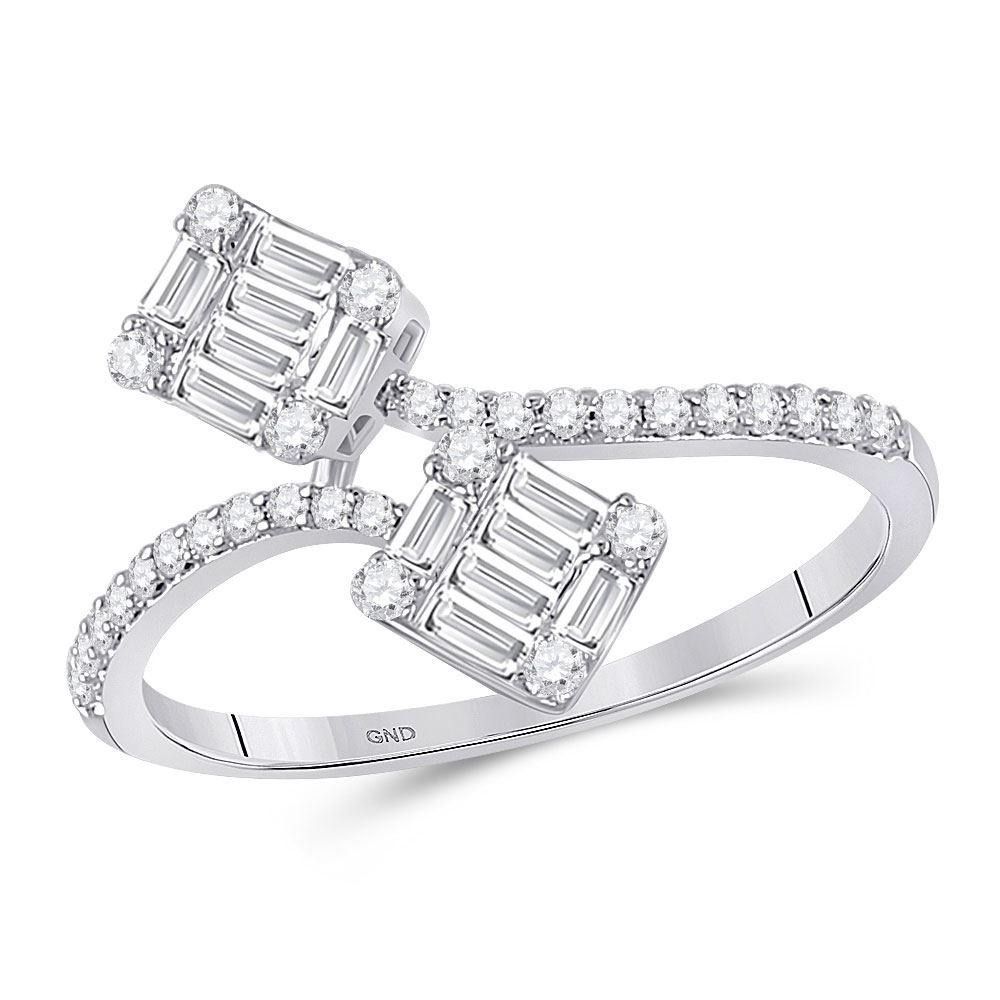 Baguette Diamond Bypass Band Ring 1/2 Cttw 14KT White Gold