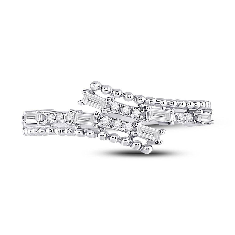 14kt White Gold Womens Baguette Diamond Bypass Band Ring 1/5 Cttw.