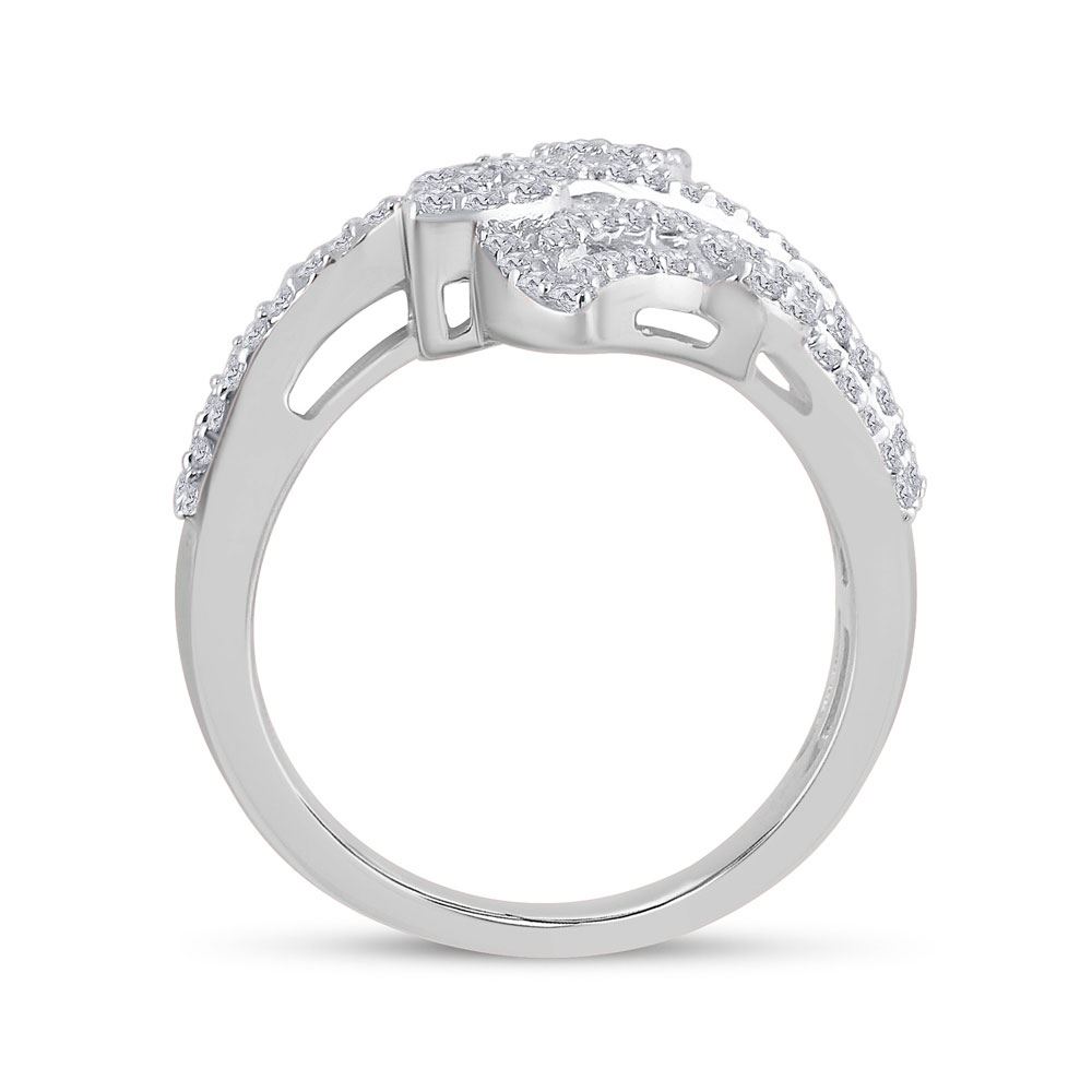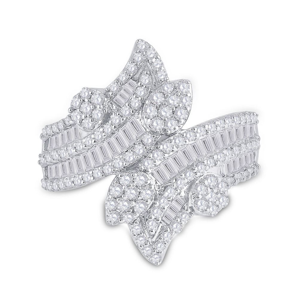 14kt White Gold Womens Baguette Diamond Bypass Cluster Fashion Ring 1-1/3 Cttw