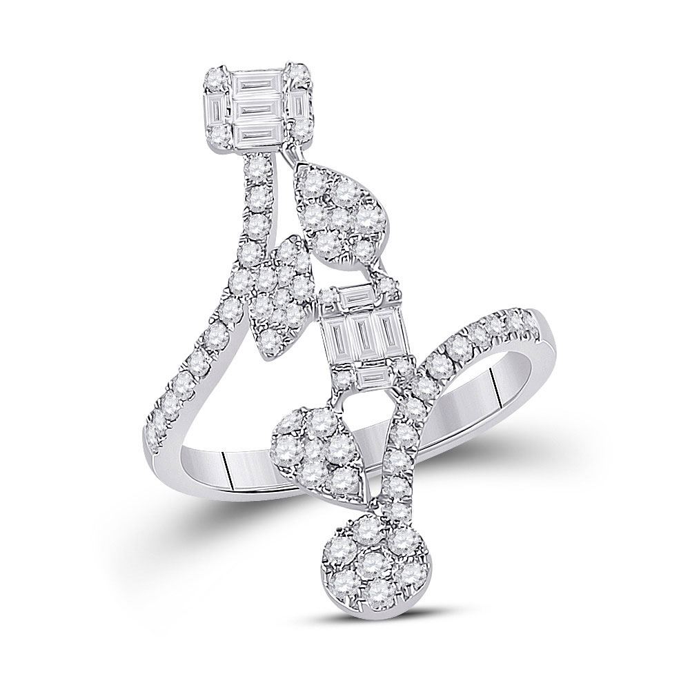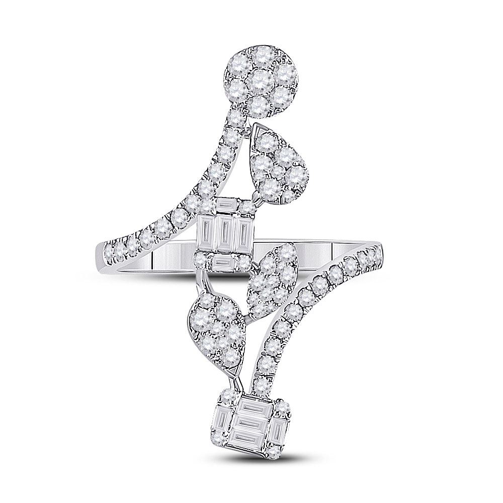 Baguette Diamond Bypass Cluster Fashion Ring 7/8 Cttw 14KT White Gold