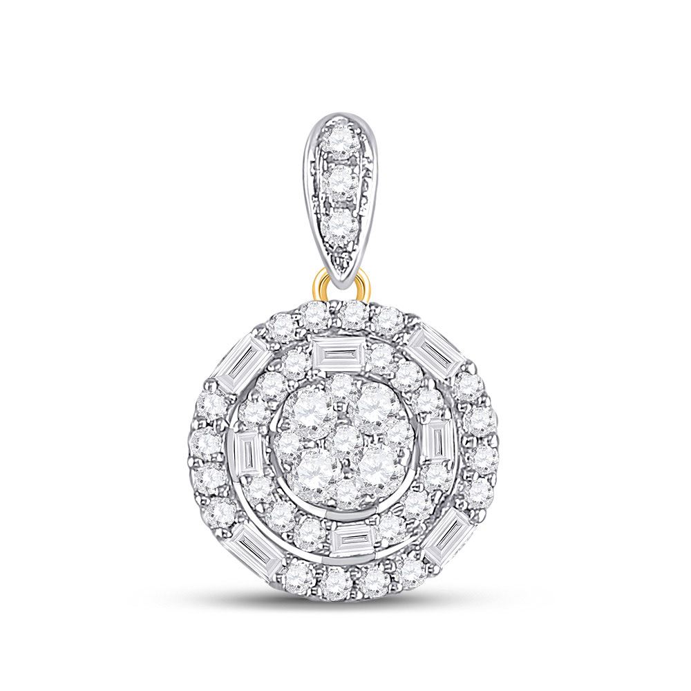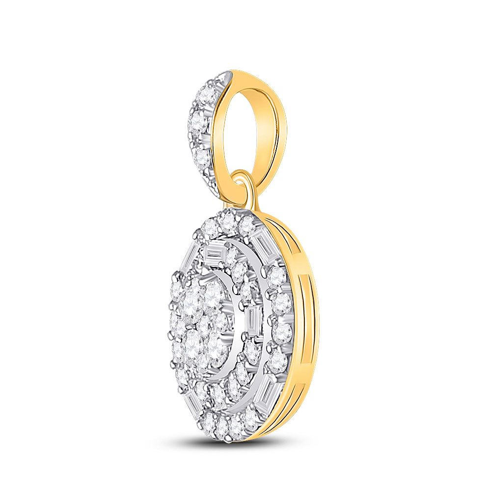 14kt Yellow Gold Womens Baguette Diamond Circle Cluster Pendant 3/8 Cttw.
