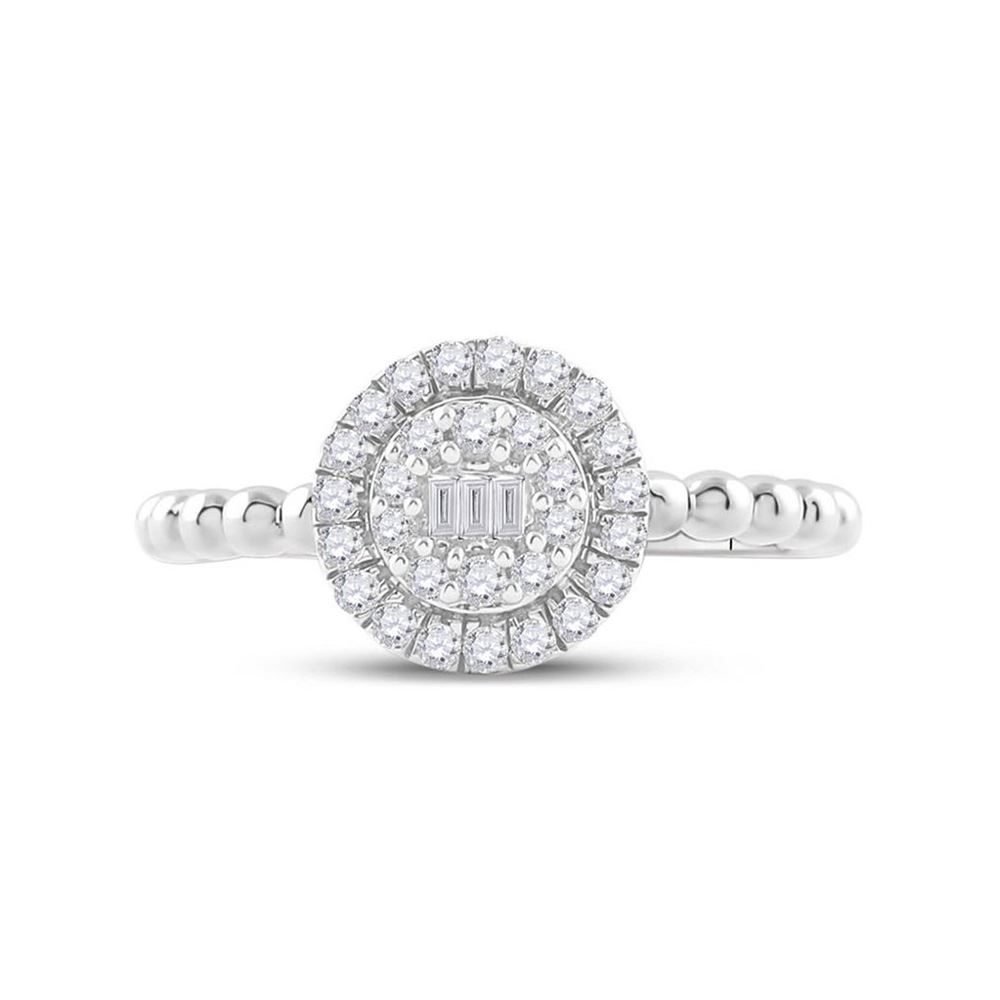 10kt White Gold Womens Baguette Diamond Circle Cluster Ring 1/4 Cttw