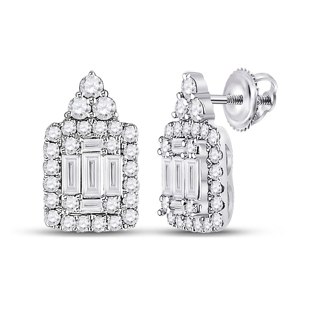 14kt White Gold Womens Baguette Diamond Cluster Earrings 1/2 Cttw