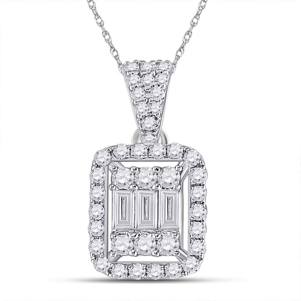 14kt White Gold Womens Baguette Diamond Cluster Pendant 1/2 Cttw.