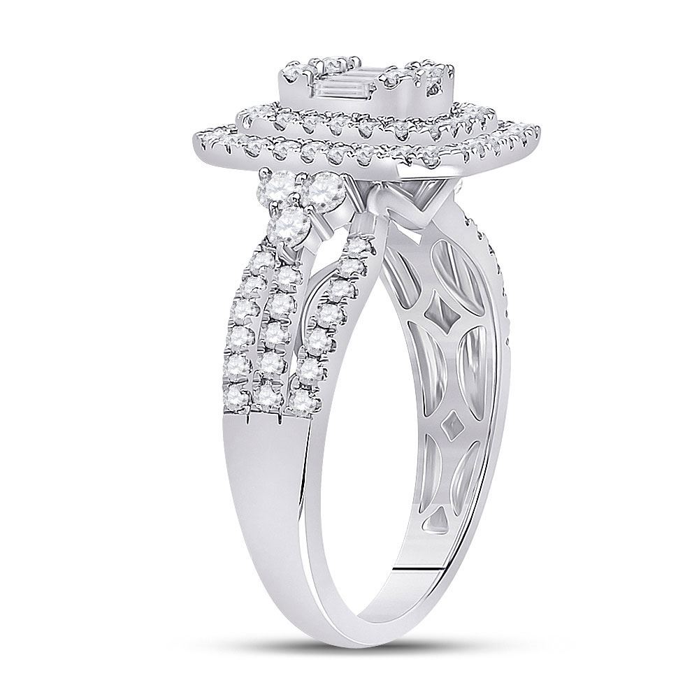 14kt White Gold Womens Baguette Round Diamond Cluster Ring 1-1/5 Cttw