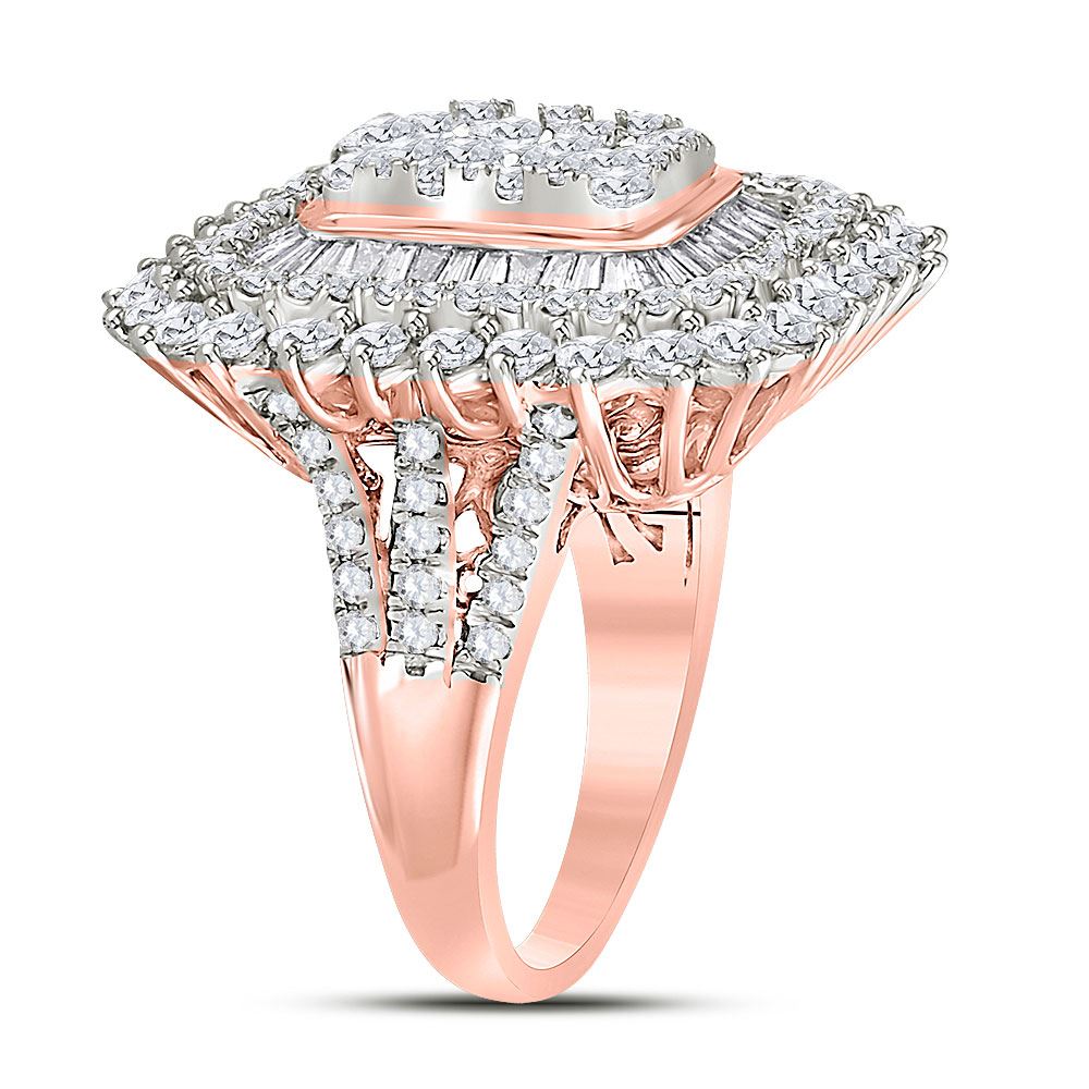 10kt Rose Gold Womens Round Baguette Diamond Cluster Ring 3-1/2 Cttw