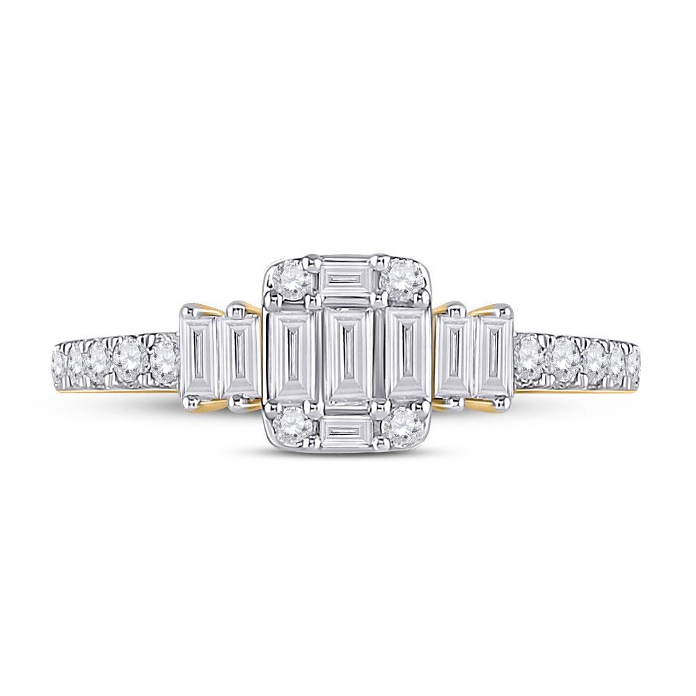 14kt Yellow Gold Womens Baguette Diamond Cluster Ring 5/8 Cttw