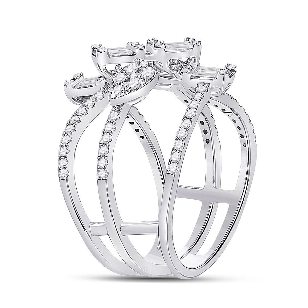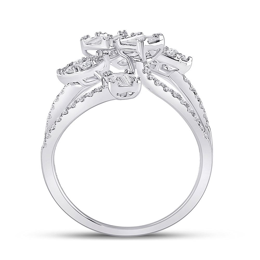 14kt White Gold Womens Baguette Diamond Cluster Strand Fashion Ring 1-1/8 Cttw