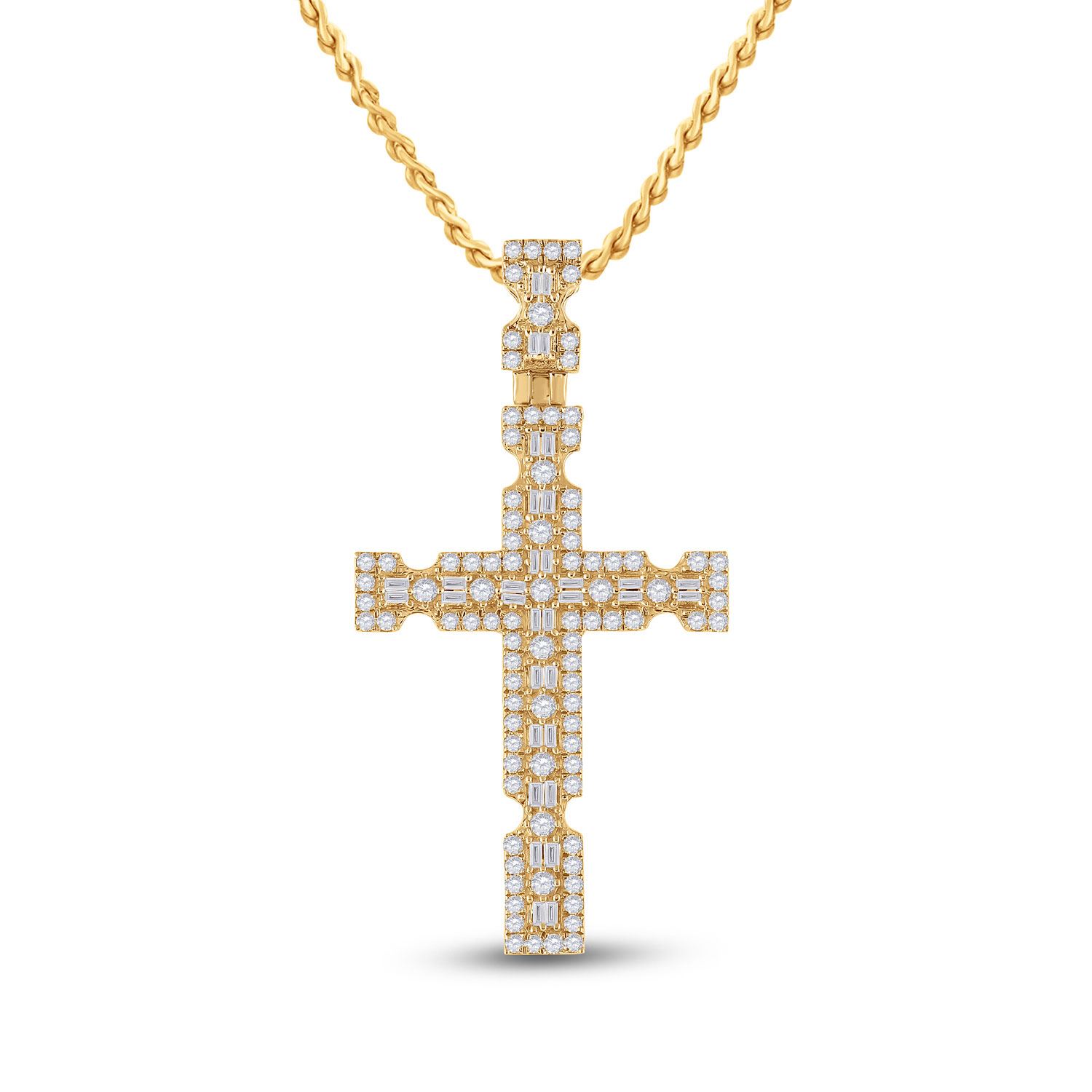 Baguette Diamond Cross Charm Pendant 1-3/8 Cttw 14KT Yellow Gold