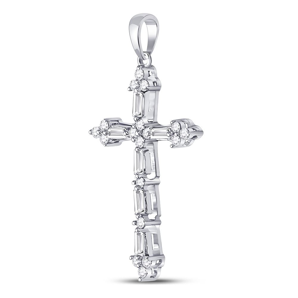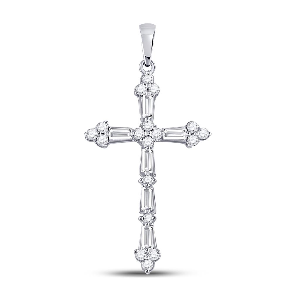 10kt White Gold Womens Round Baguette Diamond Cross Pendant 1/2 Cttw