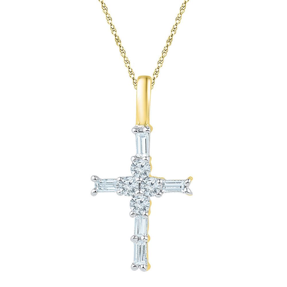 REF-19A1V - SKU: GD97361 ---- Baguette Diamond Cross Pendant 1/4 Cttw 10kt Yellow Gold