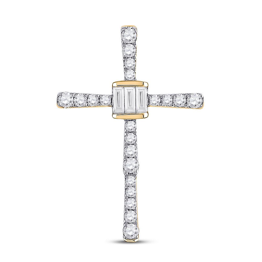 14kt Yellow Gold Womens Baguette Round Diamond Cross Pendant 5/8 Cttw