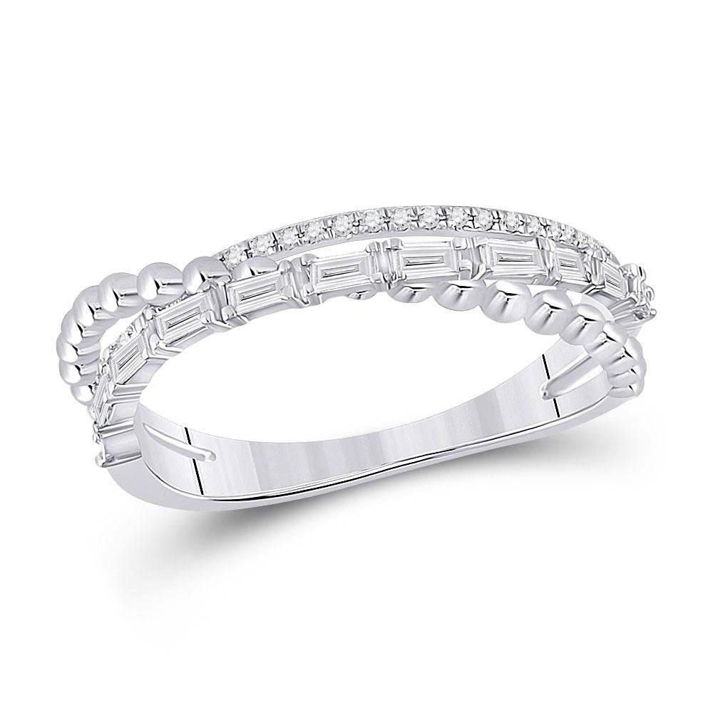 14kt White Gold Womens Baguette Diamond Crossover Band Ring 1/3 Cttw.