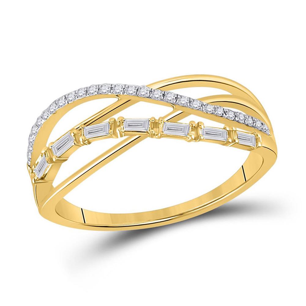 14kt Yellow Gold Womens Baguette Round Diamond Crossover Band Ring 1/4 Cttw