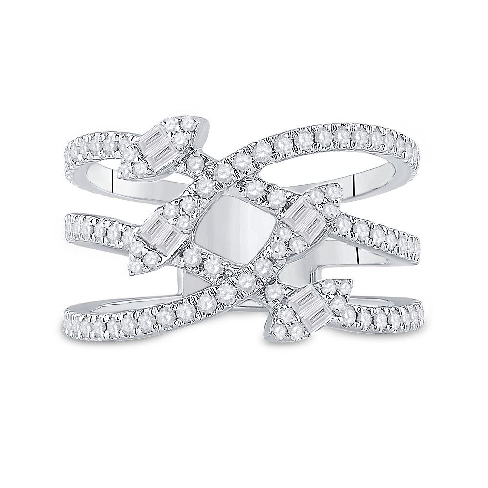 14kt White Gold Womens Baguette Diamond Crossover Strand Band Ring 3/4 Cttw