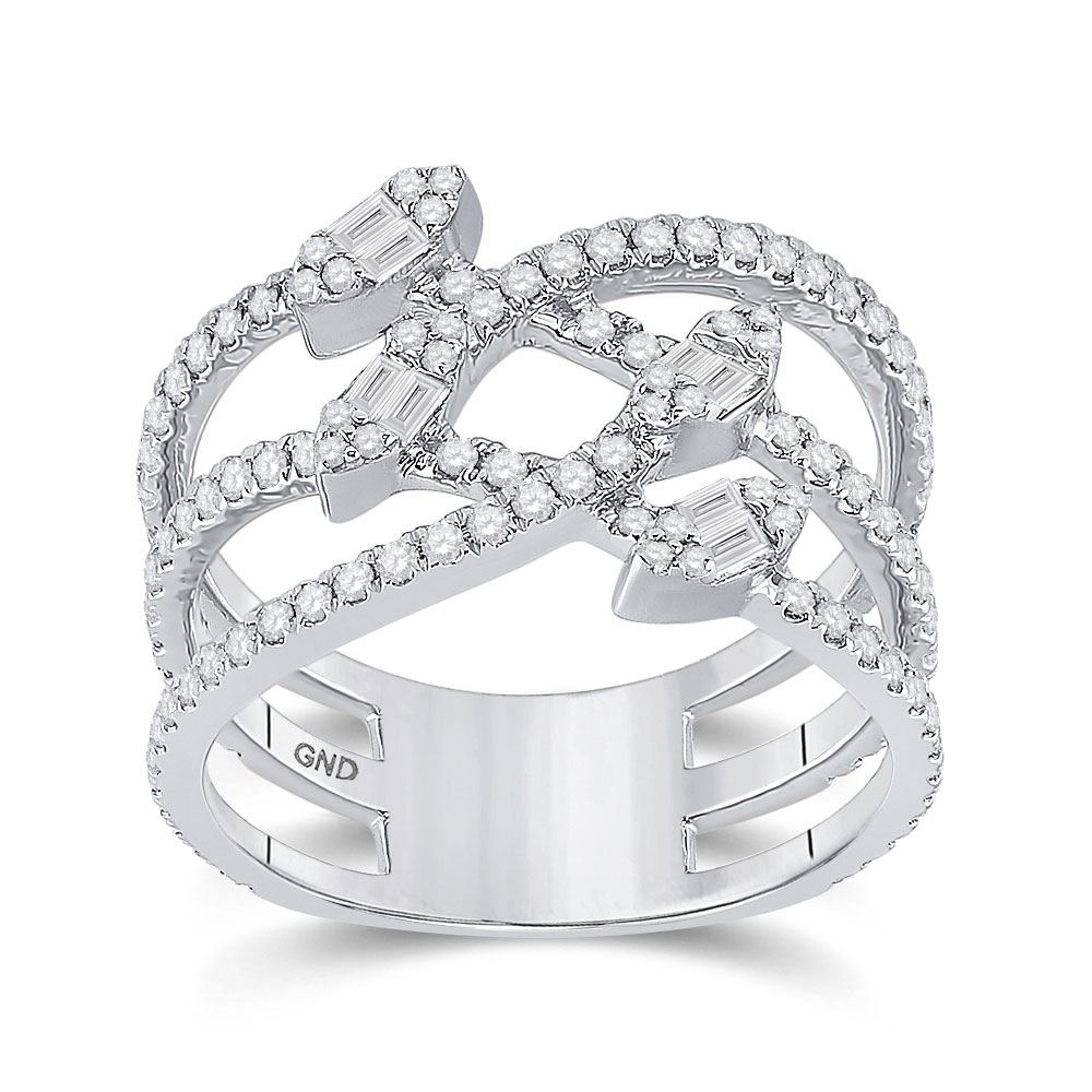 14kt White Gold Womens Baguette Diamond Crossover Strand Band Ring 3/4 Cttw