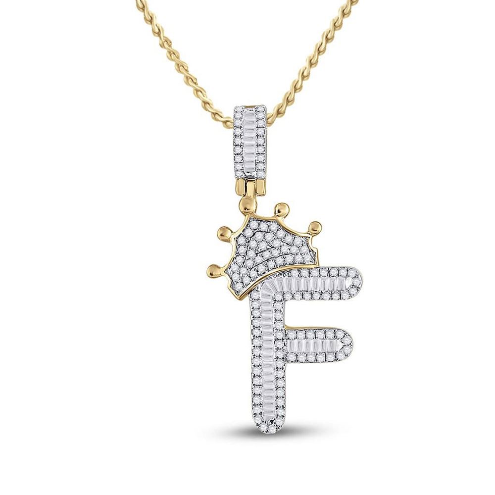 Baguette Diamond Crown F Letter Charm Pendant 5/8 Cttw 10KT Yellow Gold