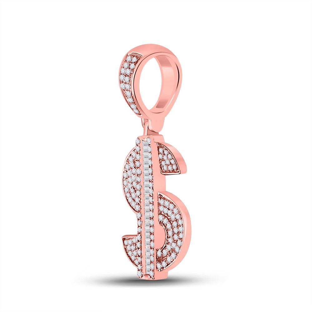 10kt Rose Gold Mens Baguette Diamond Dollar Sign Money Charm Pendant 5/8 Cttw.