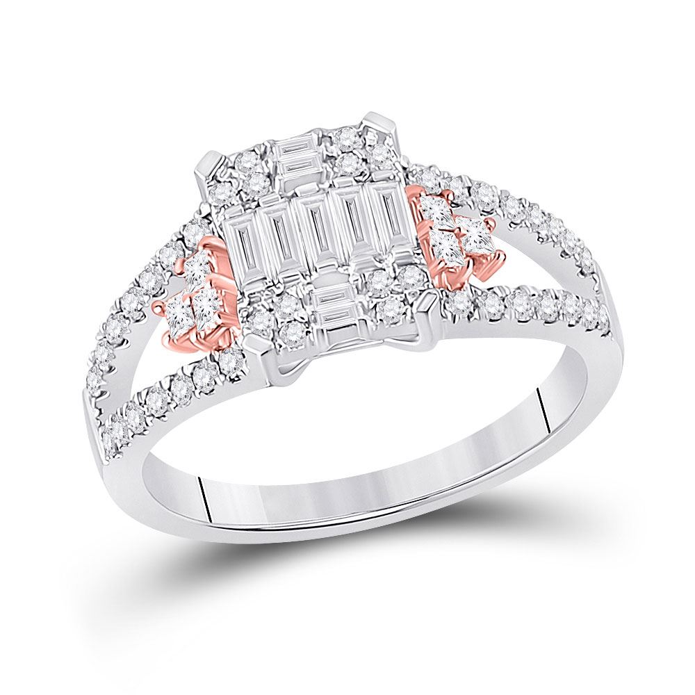 14kt Two-tone Gold Womens Baguette Diamond Fashion Cluster Ring 3/4 Cttw