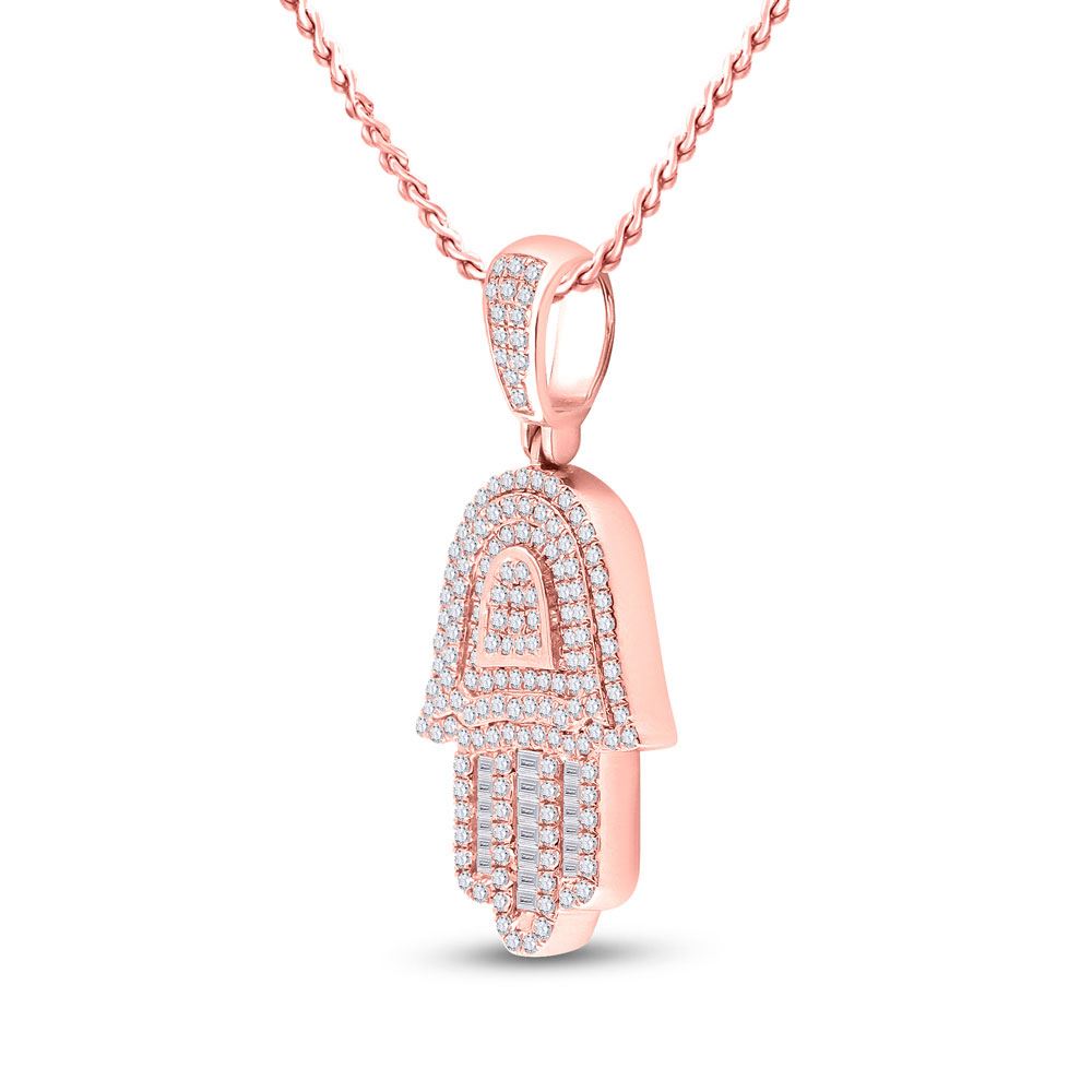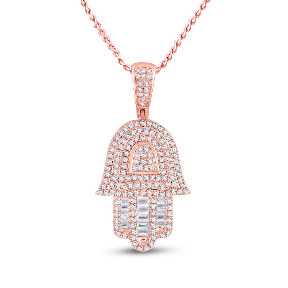 10kt Rose Gold Mens Baguette Diamond Hamsa Hand Charm Pendant 3/4 Cttw.