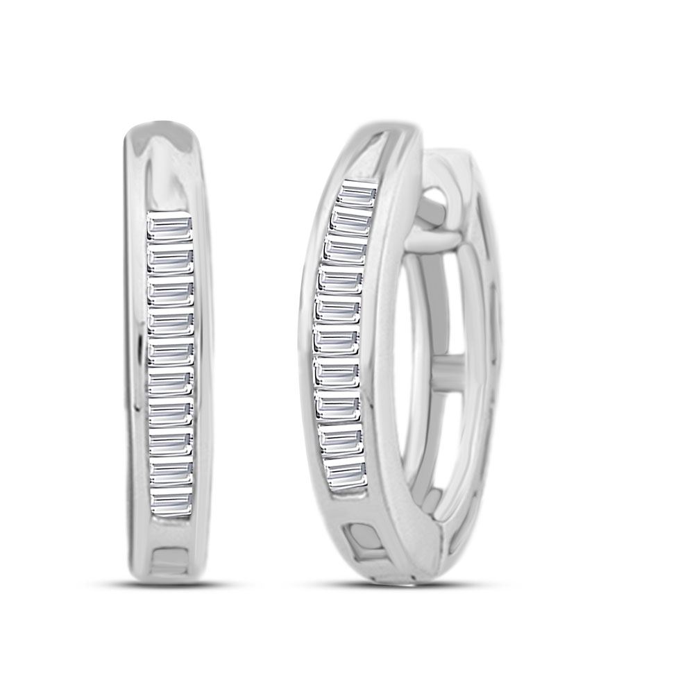 REF-10R0K - SKU: GD13511 ---- Baguette Diamond Huggie Hoop Earrings 1/6 Cttw 10kt White Gold