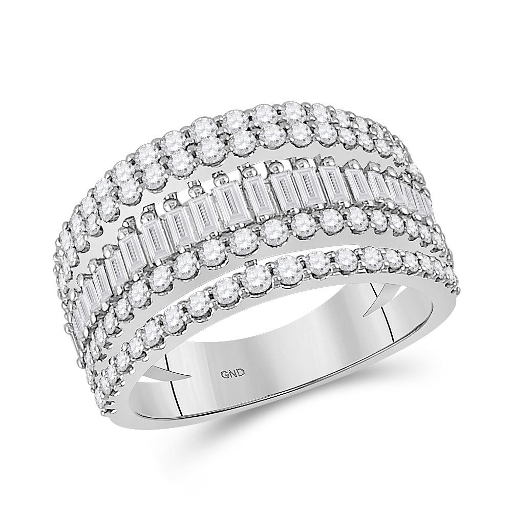 14kt White Gold Womens Baguette Diamond Modern Cocktail Band Ring 1 Cttw.