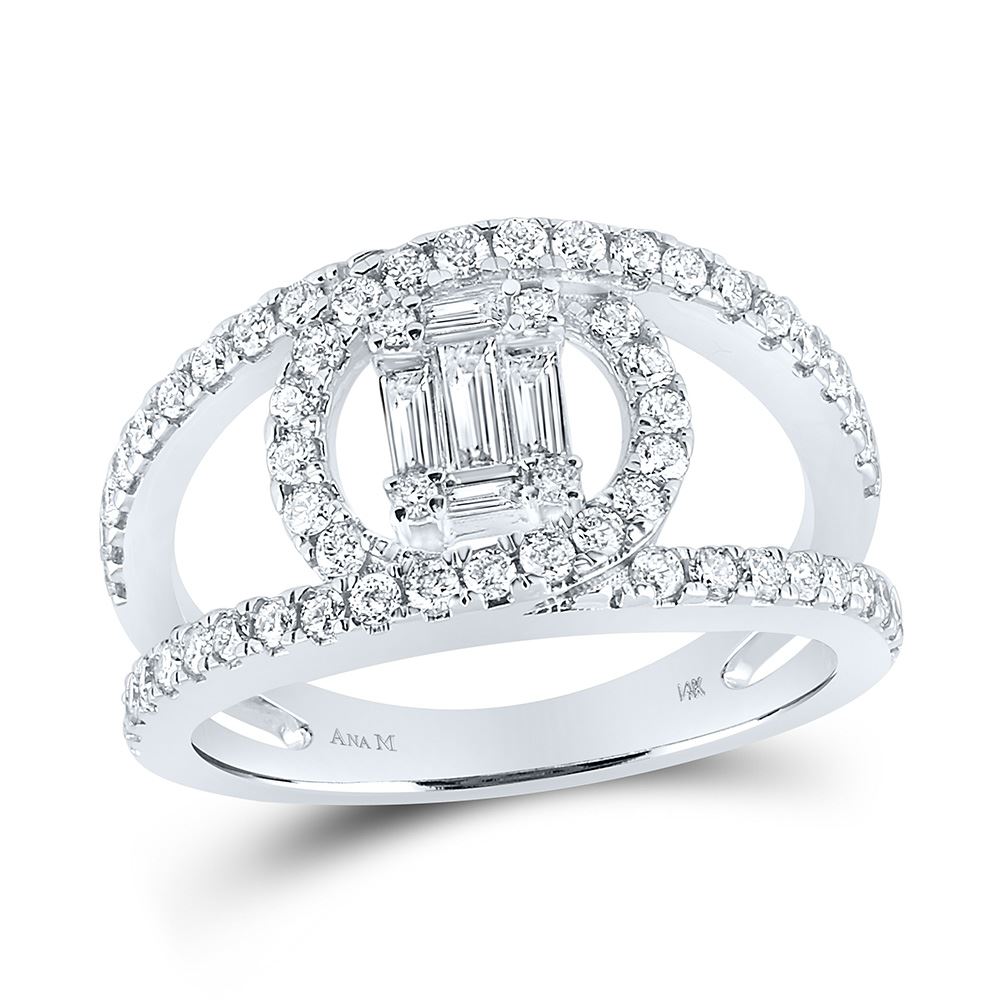 14kt White Gold Womens Baguette Diamond Negative Space Cluster Ring 1 Cttw