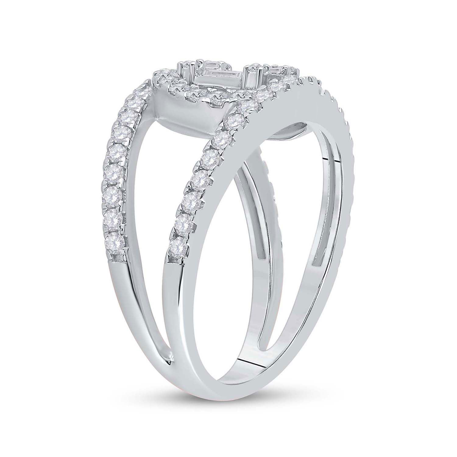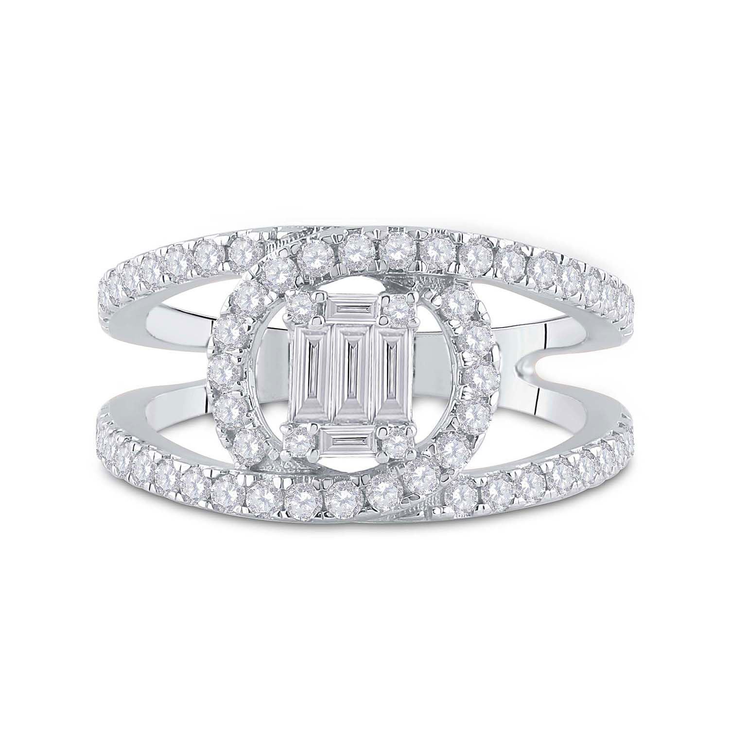 14kt White Gold Womens Baguette Diamond Negative Space Cluster Ring 1 Cttw