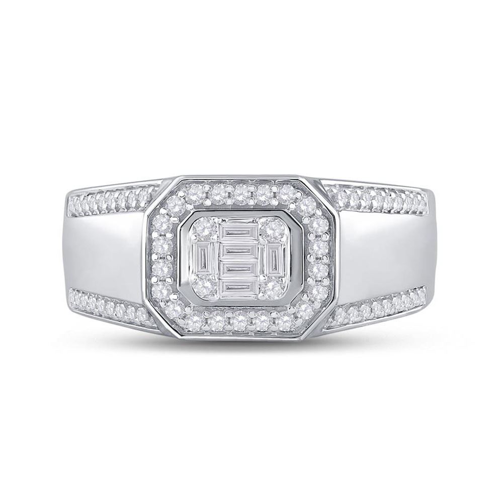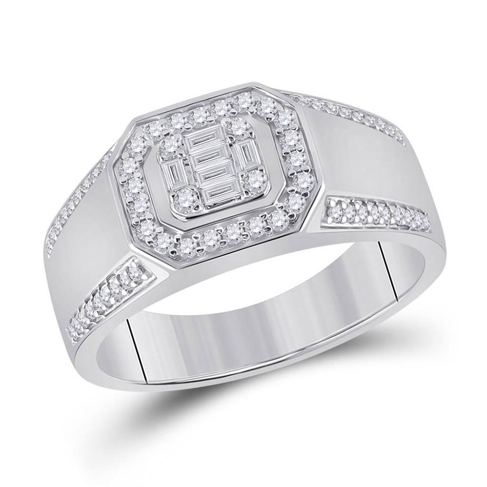 14kt White Gold Womens Baguette Diamond Octagon Cluster Ring 1/2 Cttw