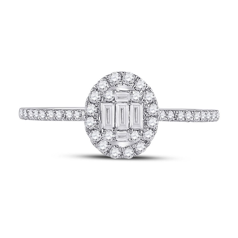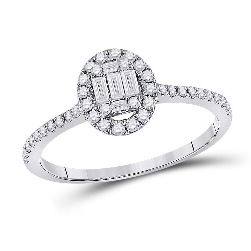 14kt White Gold Womens Baguette Diamond Oval Cluster Ring 1/3 Cttw