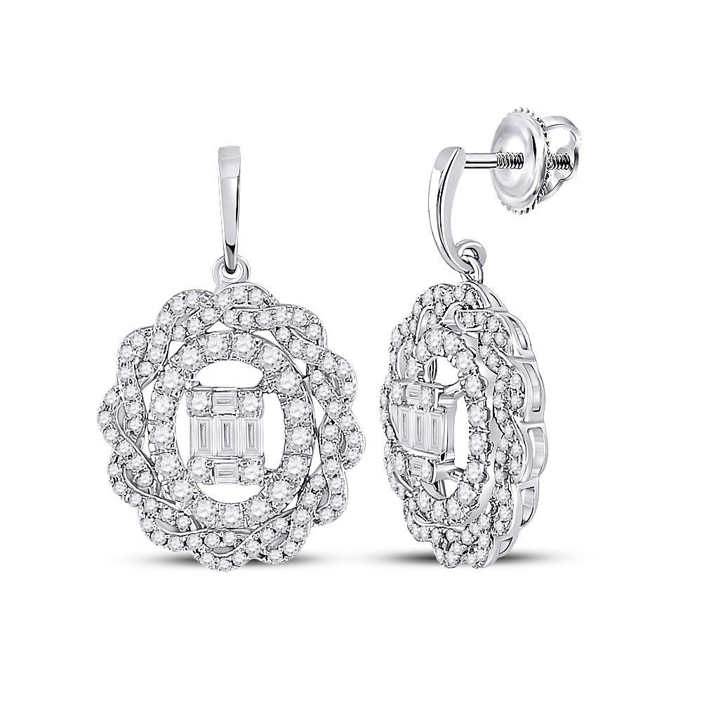 14kt White Gold Womens Baguette Diamond Oval Dangle Earrings 1 Cttw
