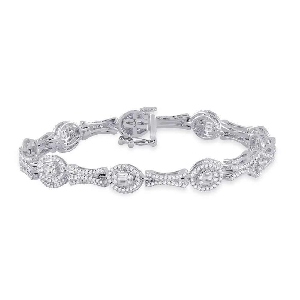 Baguette Diamond Oval Link Bracelet 2 Cttw 14KT White Gold
